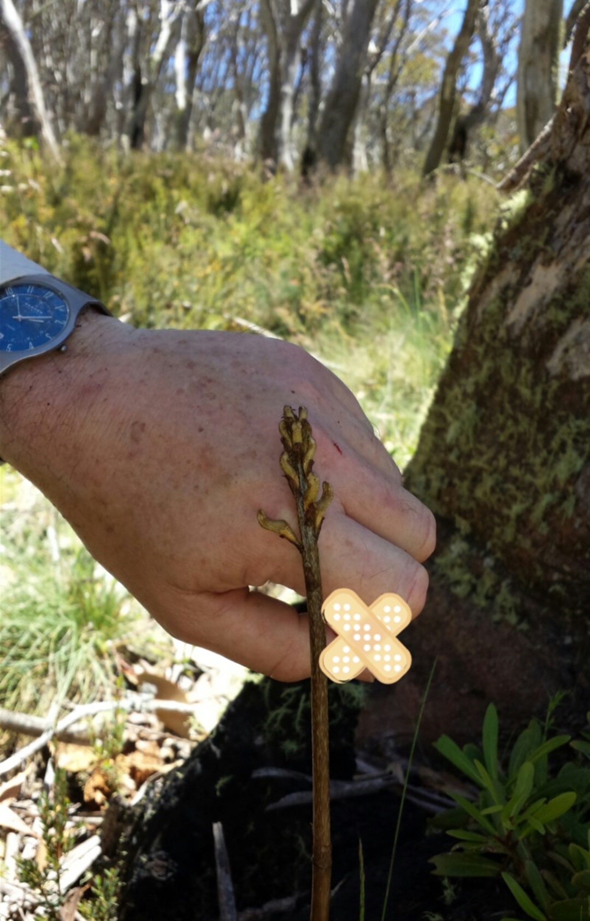 Seen at the base of a snow gum on the edge of the ski run just down from the Ginini Flats car park. I have added a band-aid to cover a wound which I believe unwise to show.