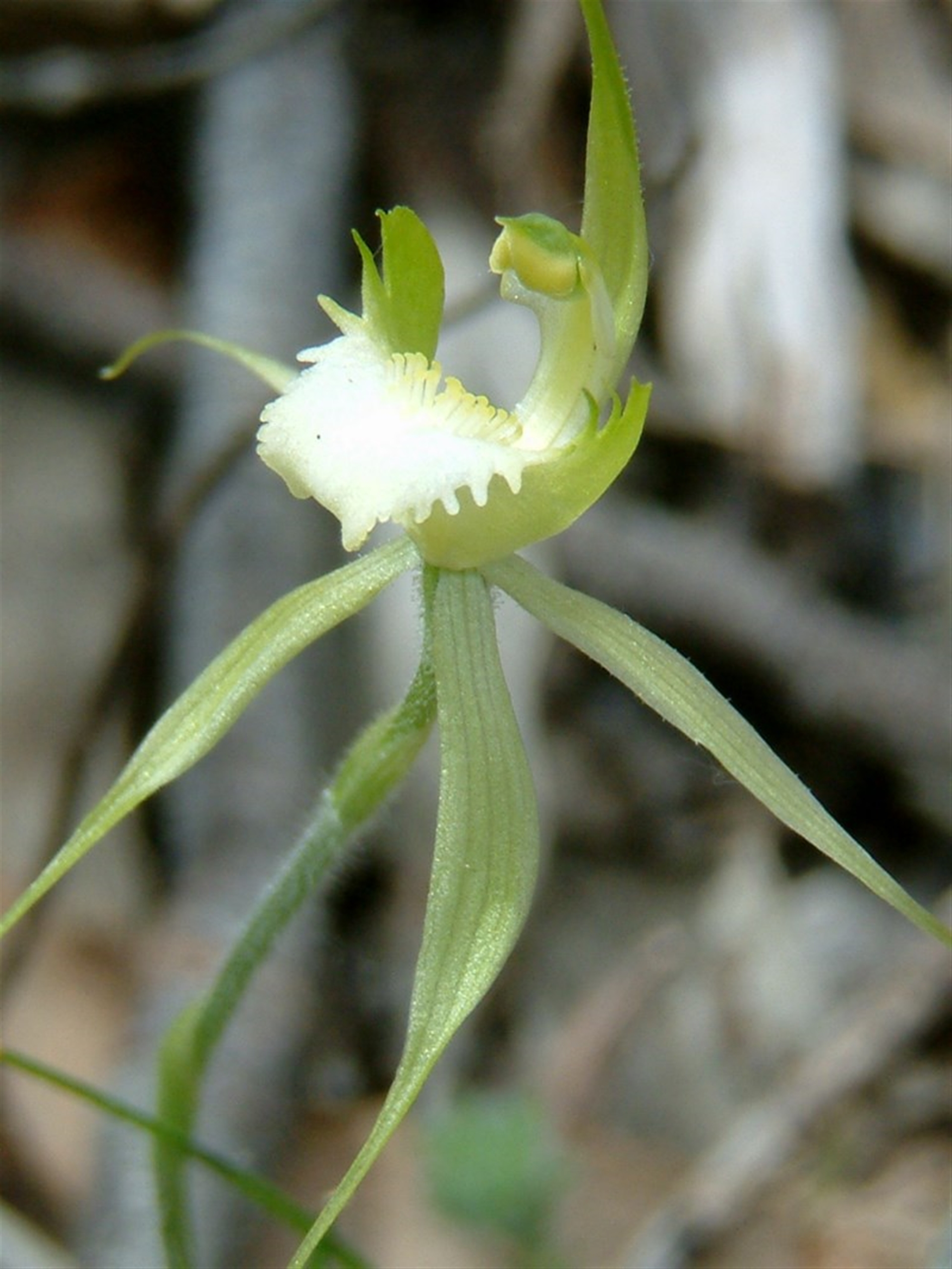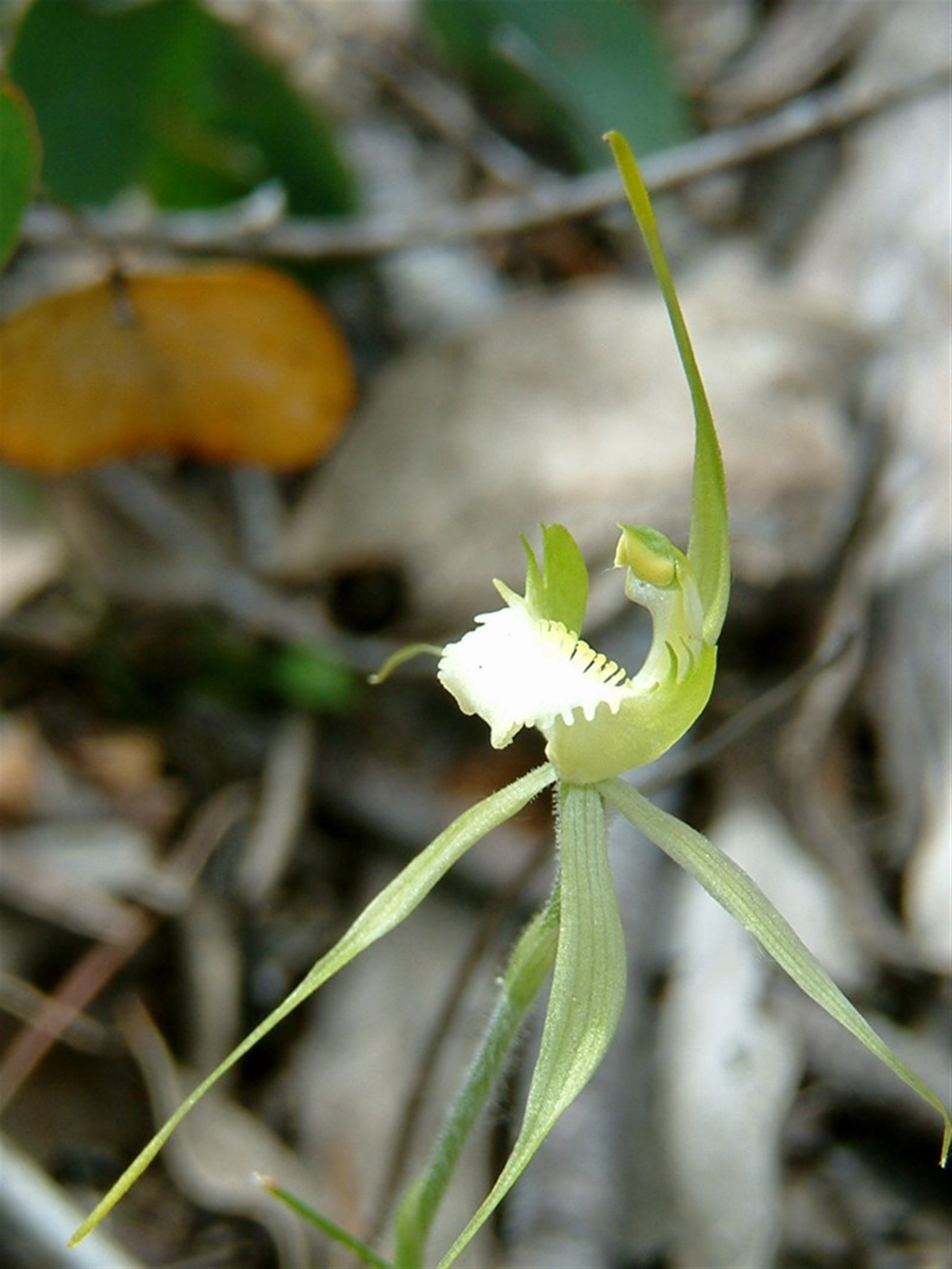 Unusual to see an albino Spider Orchid I found 2 nearby in 2010 and they were identified as Arachnorchis atrovespa