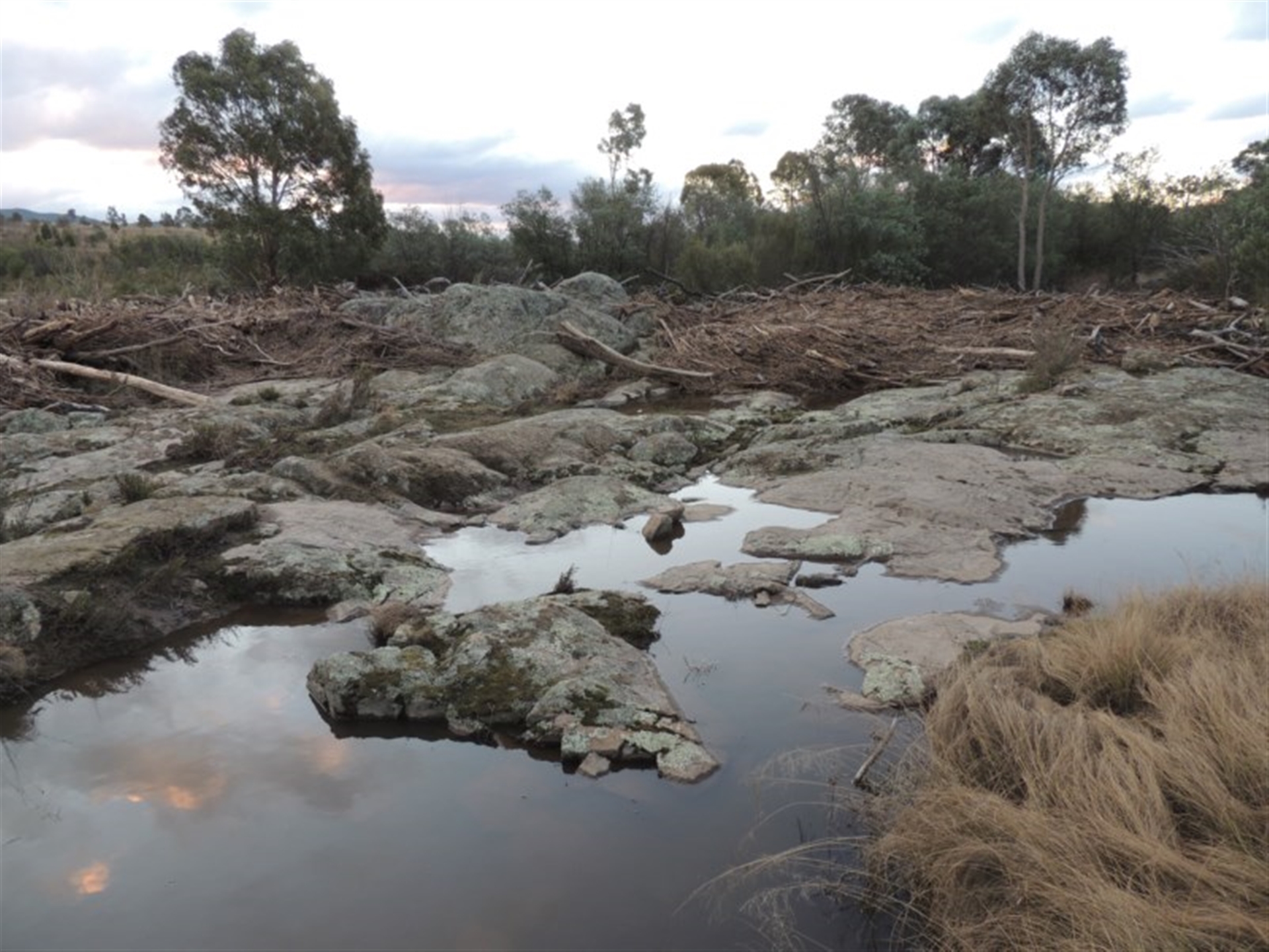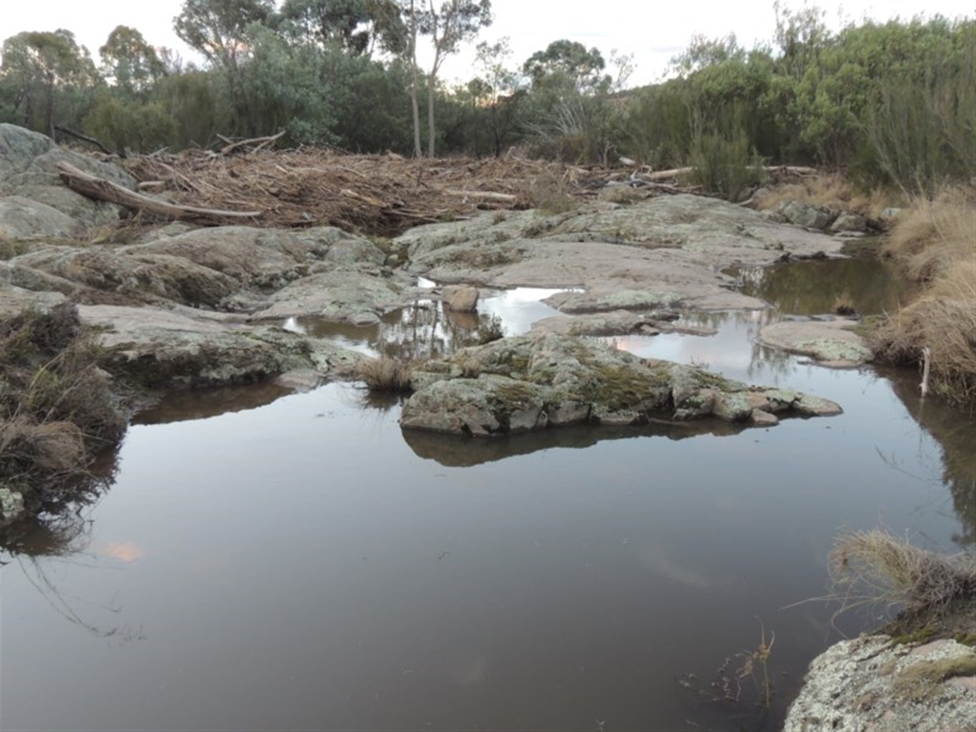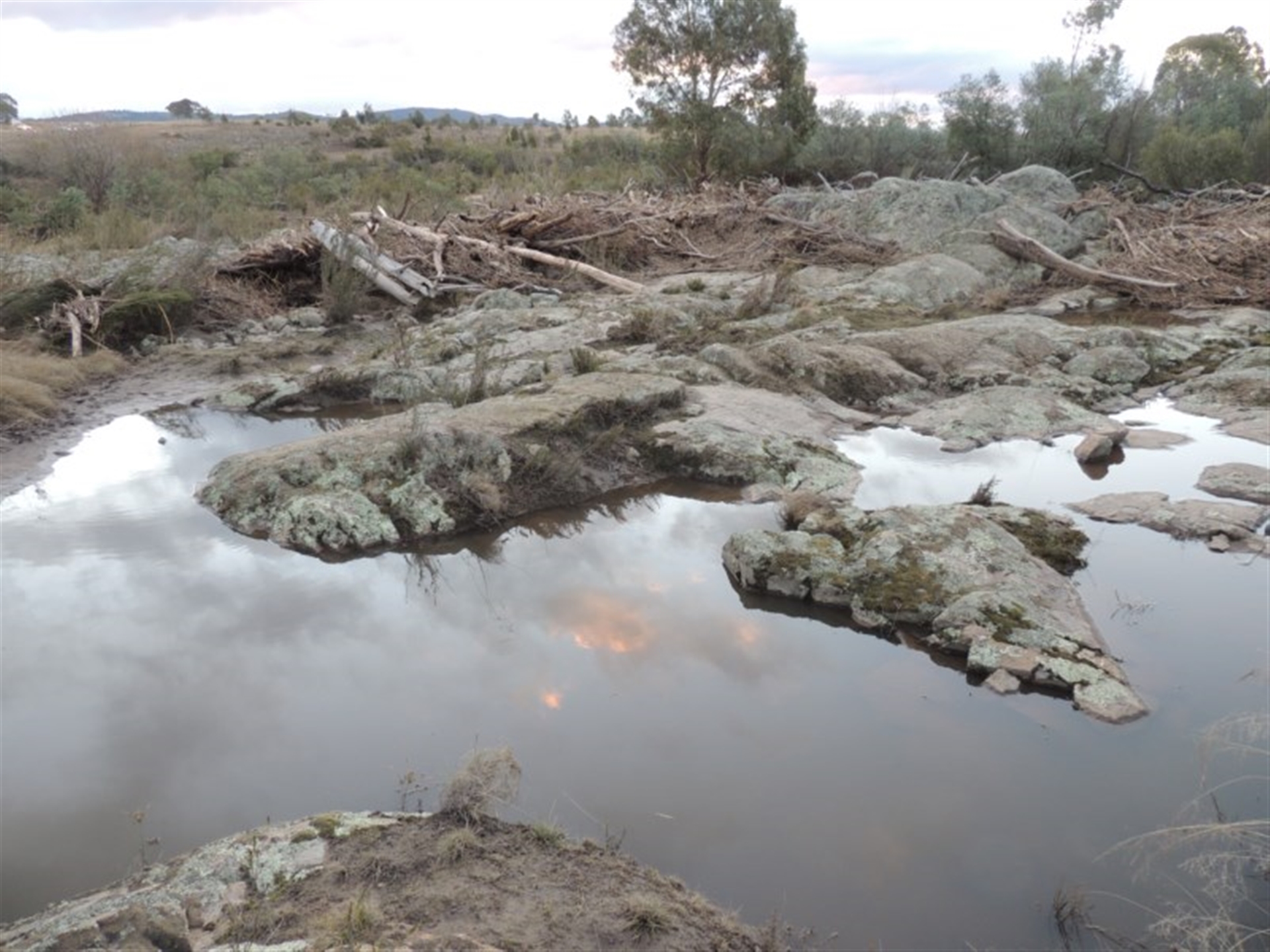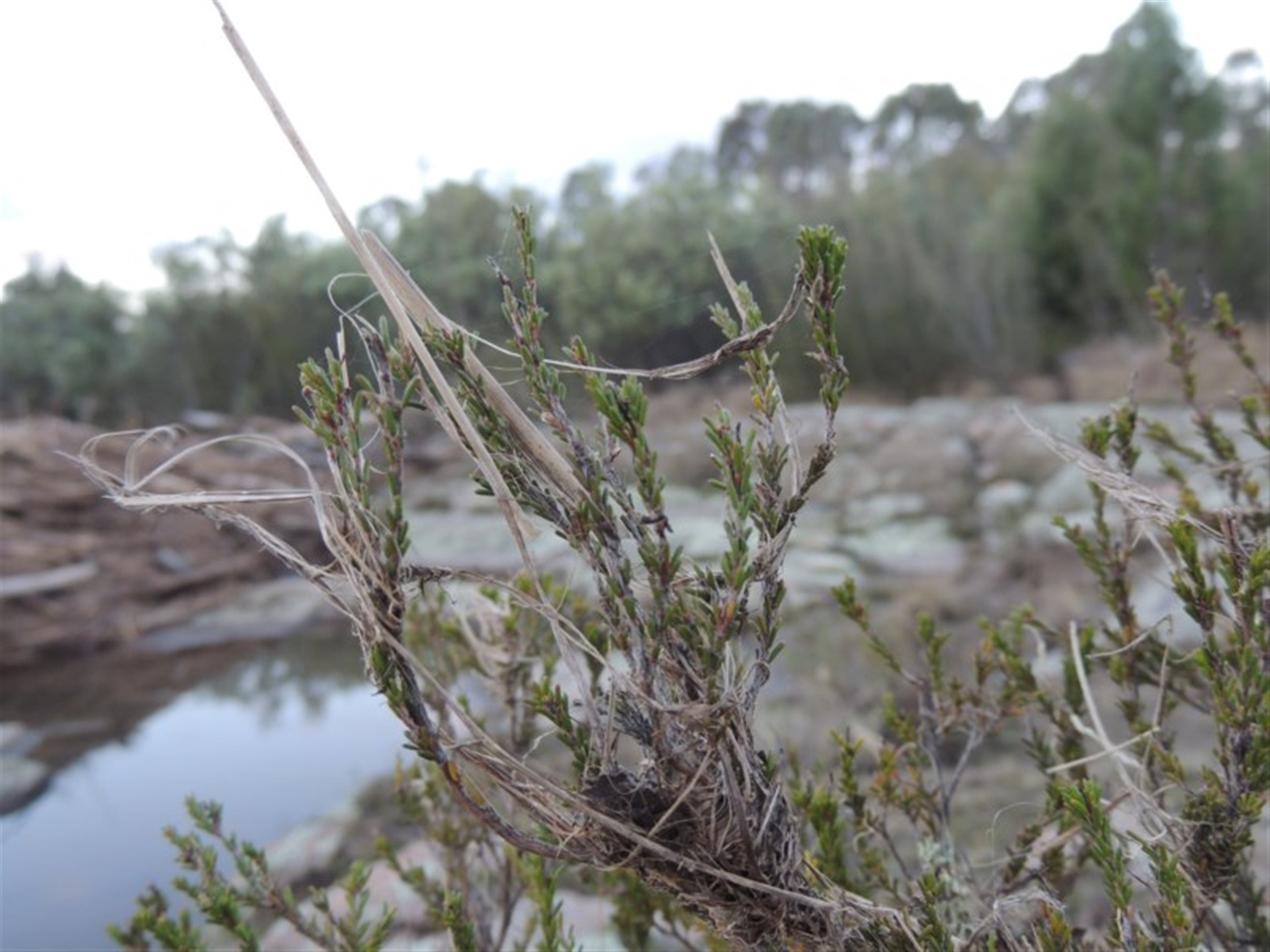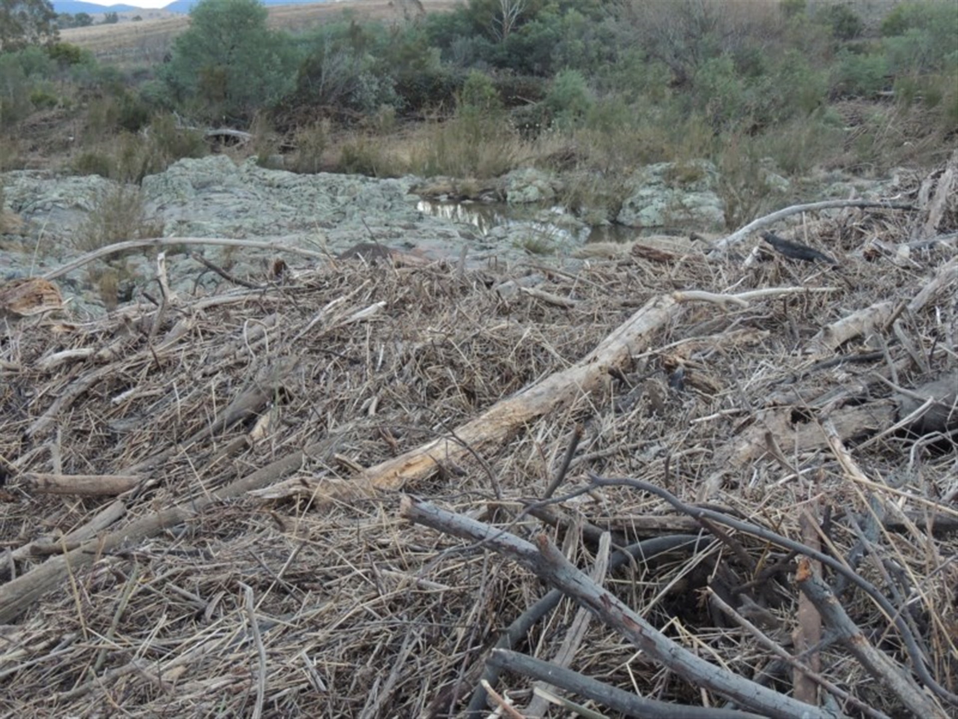 Near the Murrumbidgee River and Point Hut Crossing. The shrub is covered in flood debris, and other photos show the area surrounding the plant.