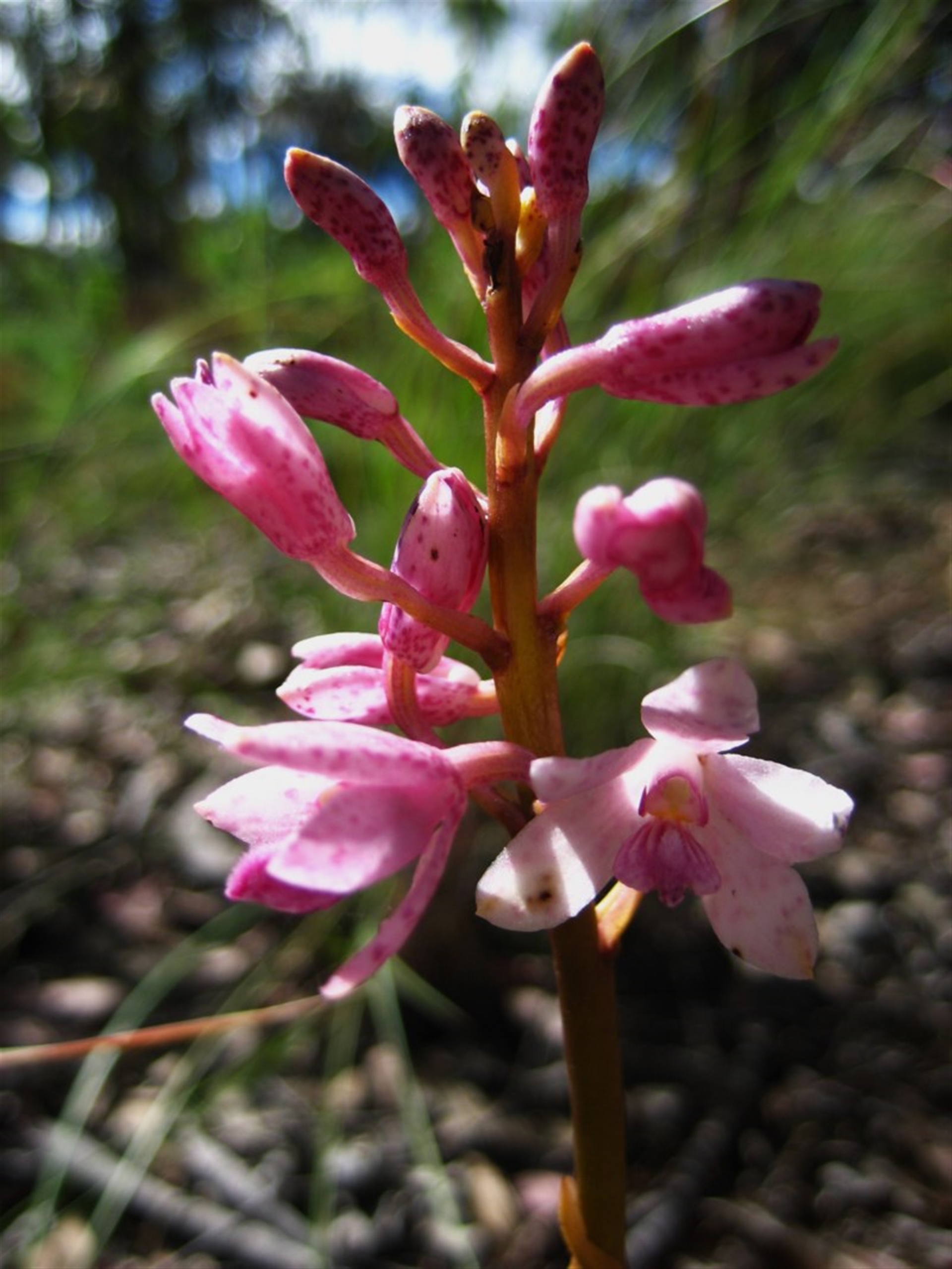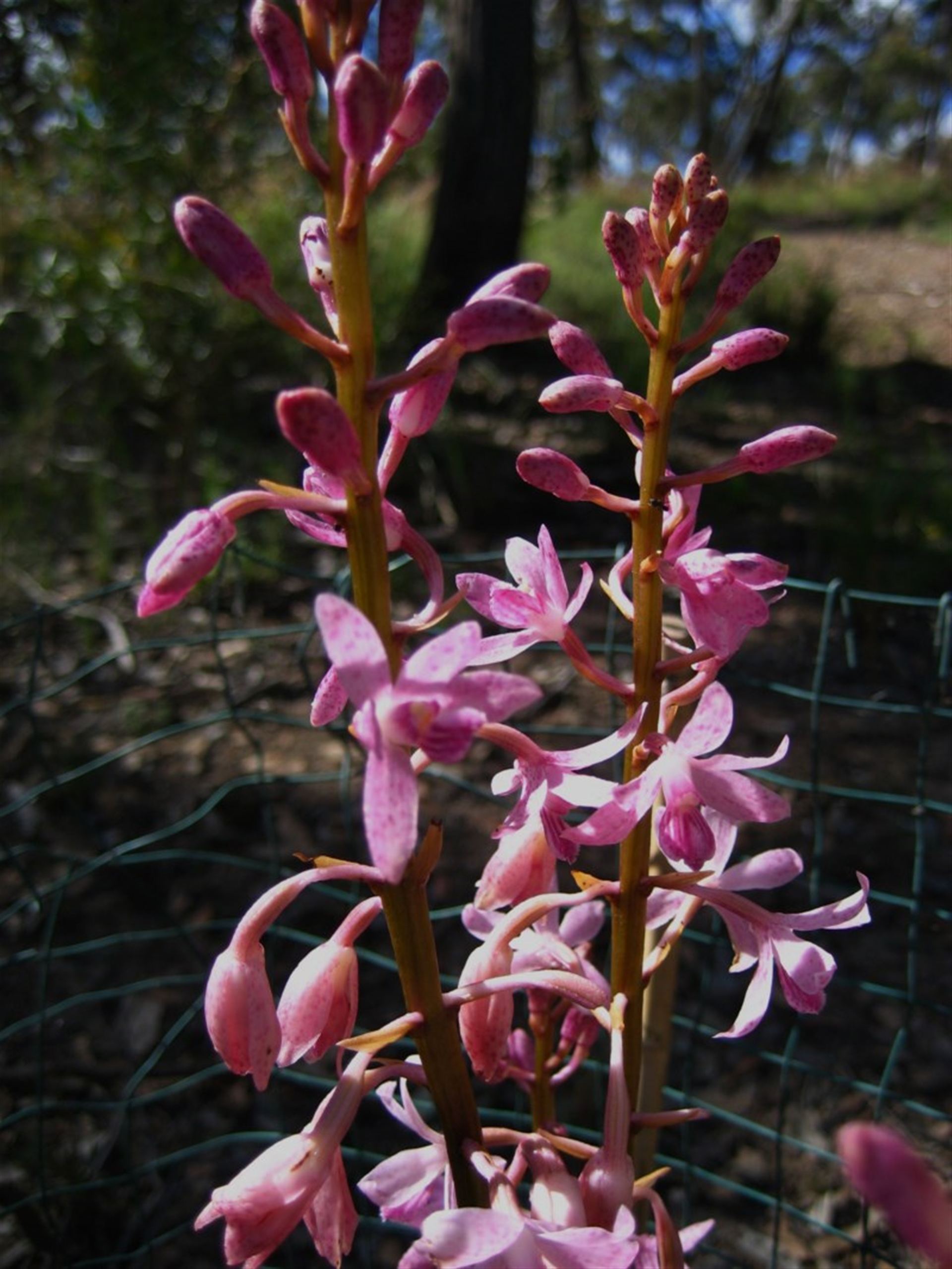 A colony of three Hyacinth orchids at Aranda. In an area pointed out to me by Ian Falconer. I believe these are from the colony that was photographed for the book "Our Patch."