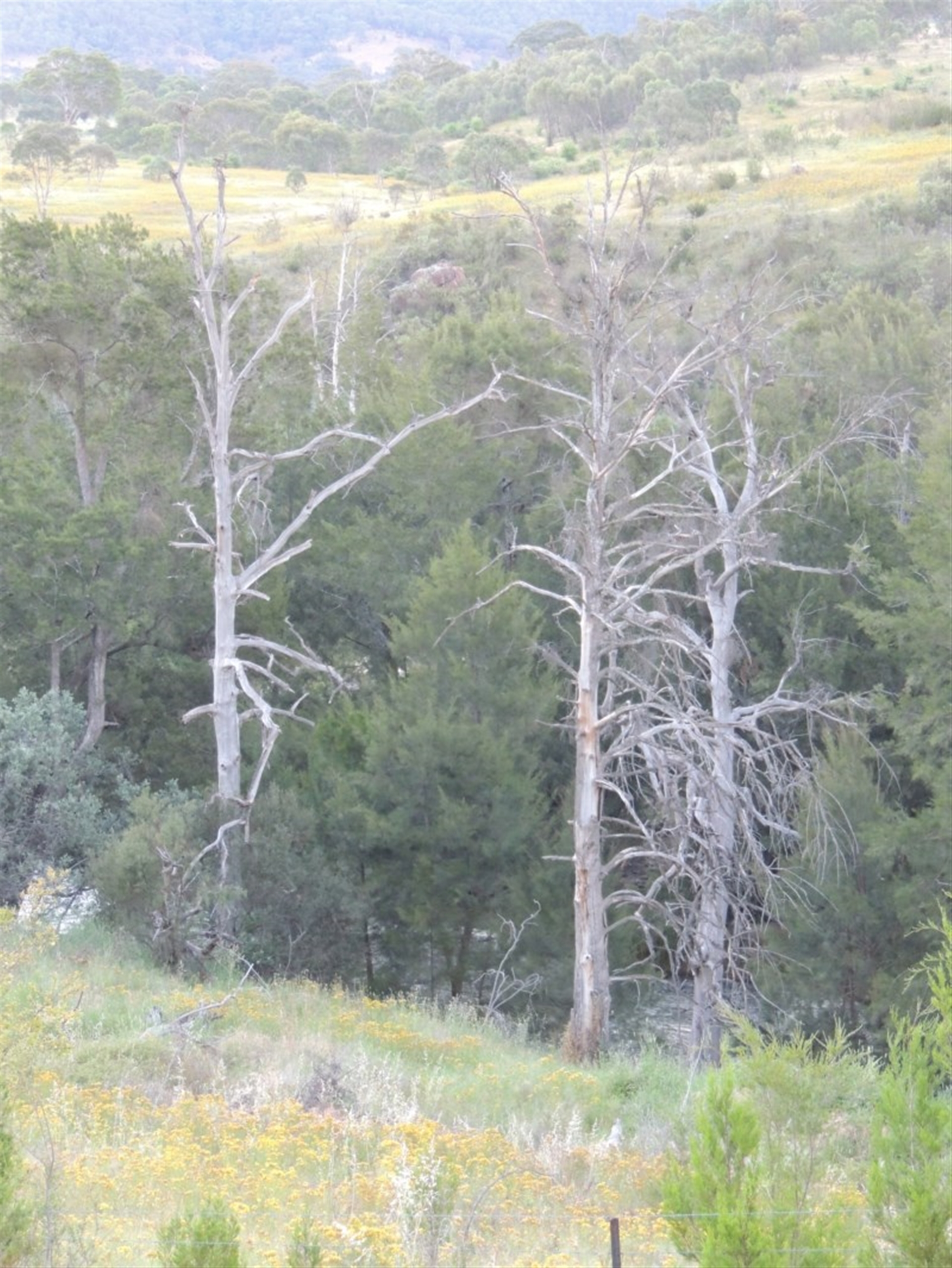 These photos show some trees that were killed by the bush-fires of 2003, and new trees coming along well.