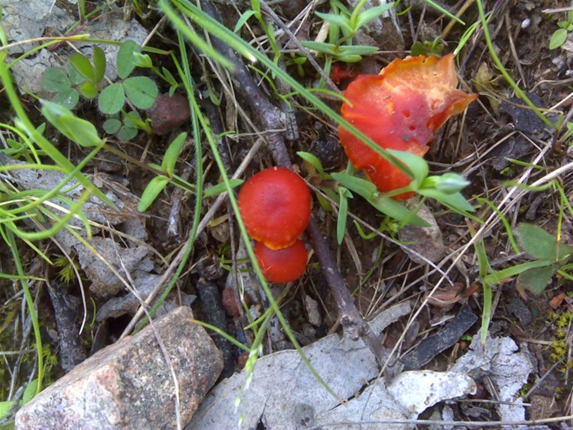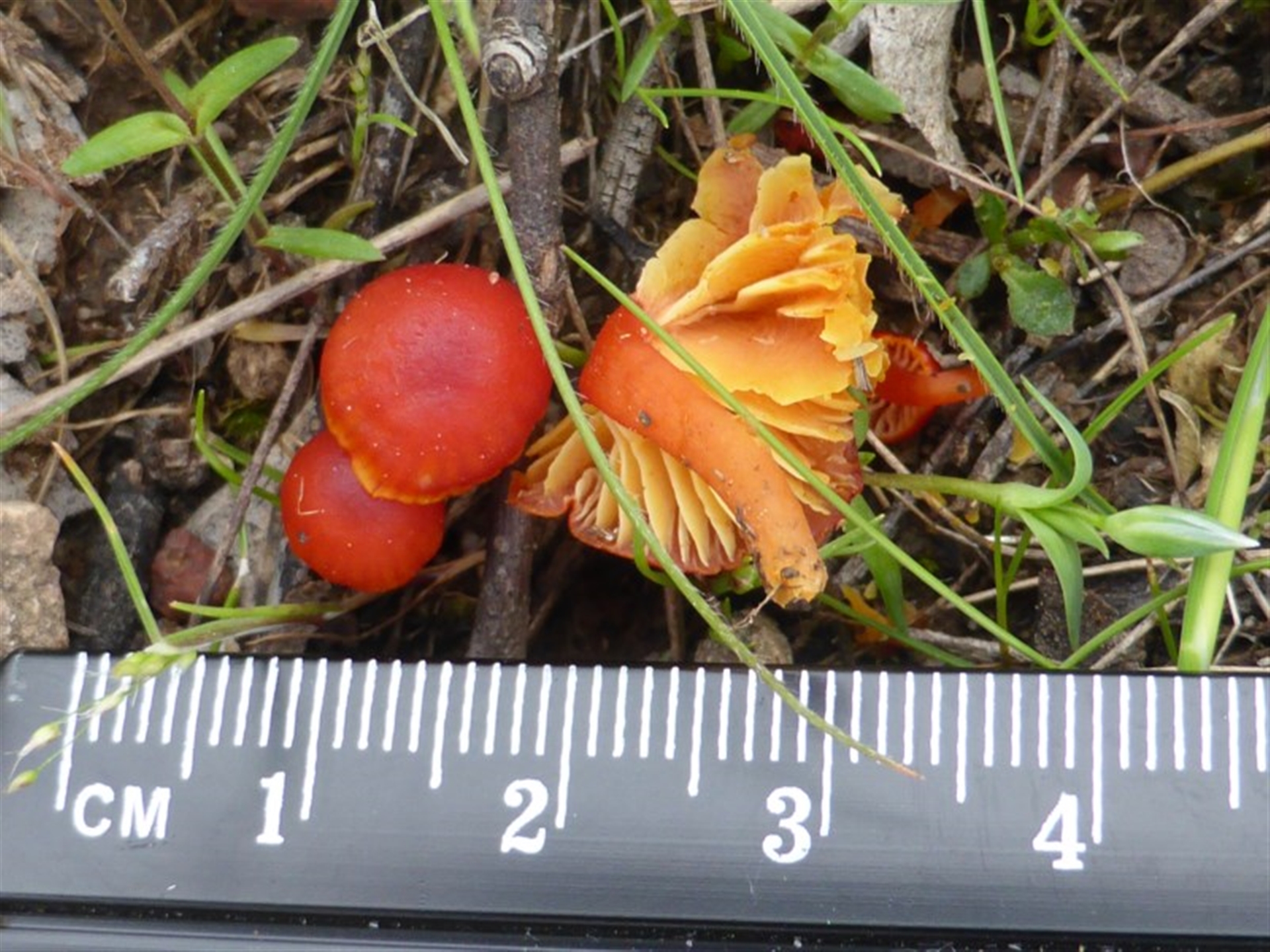 Mike Canberra & Southern Tablelands NatureMapr Hygrocybe sp. ‘red’ Caps on stems; gills below caps [mushrooms or mushroom-like] Fungi