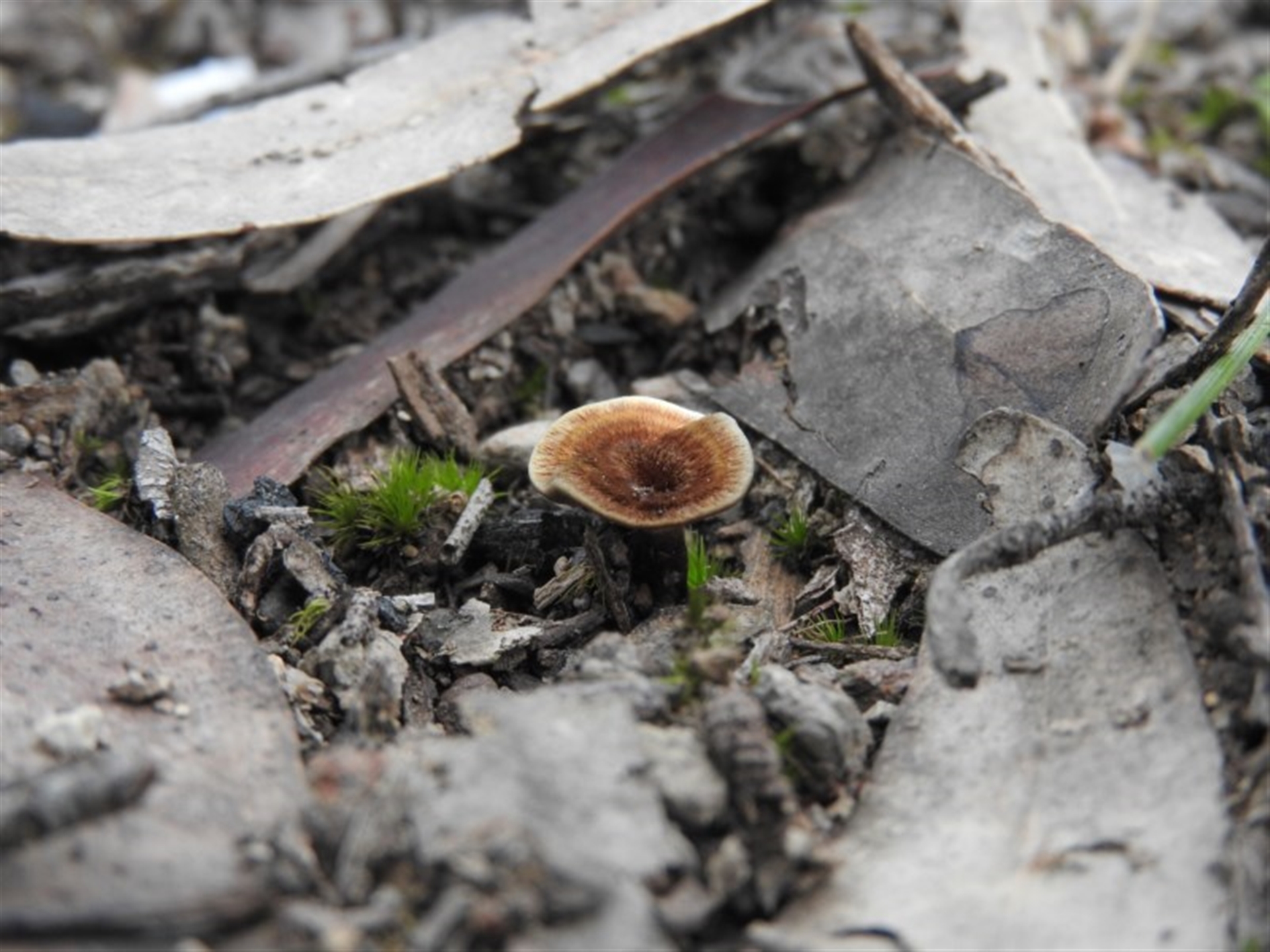 Fungi Polypores - Non-fleshy texture, stems central or lateral Caps on stems; pores below caps [boletes & stemmed polypores] ArcherCallaway Canberra & Southern Tablelands NatureMapr Coltricia sp.