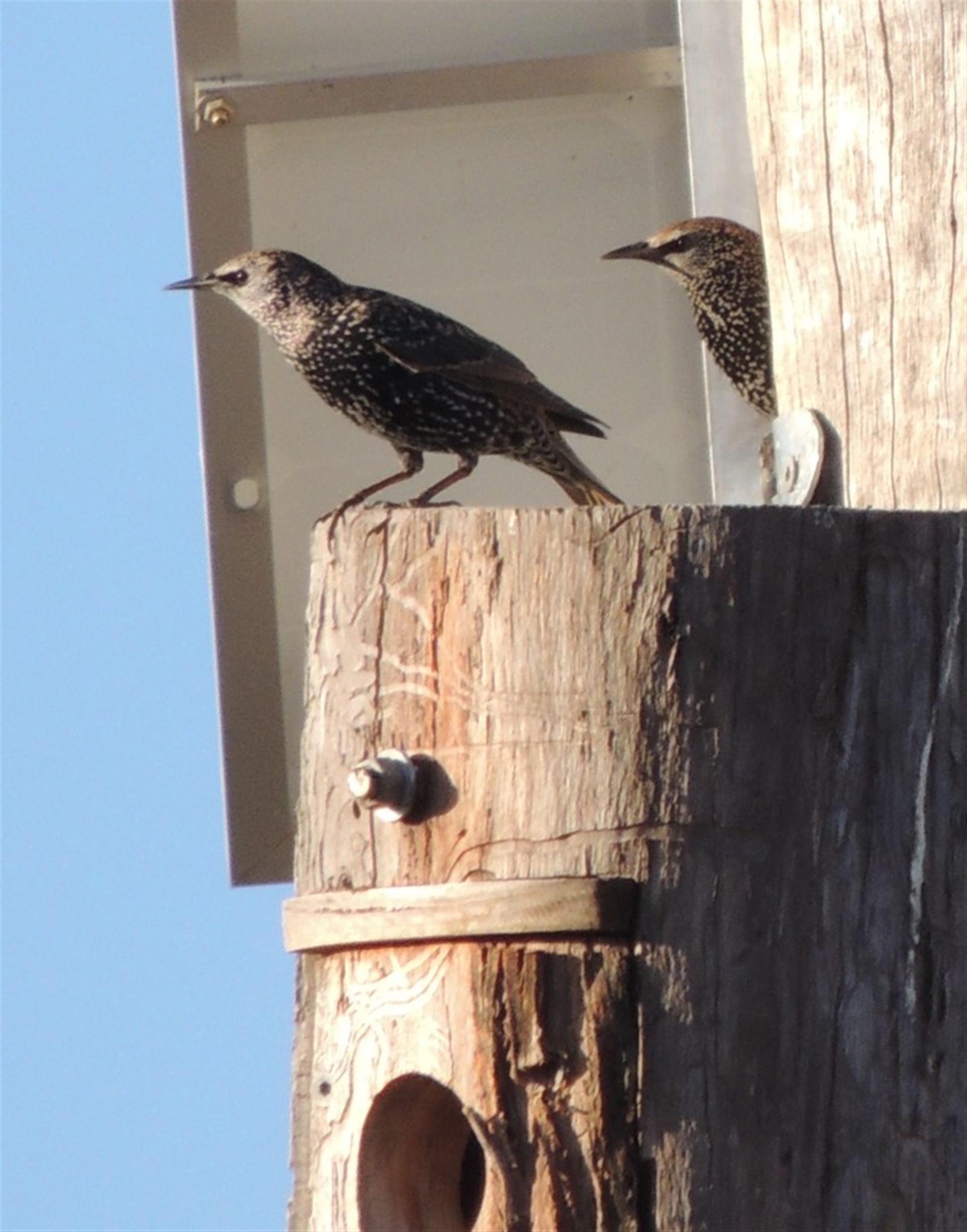 This Birds Australia link shows how to build nest boxes with entry hole sizes designed for particular bird species smaller than a starling or mynah. Also includes a design for the anti-Myha baffle which would discourage starlings too. I have built one which worked to discourage mynahs from a nest box for the Eastern Rosella. https://www.google.com.au/search?q=Birds+Australia+nest+boxes&rlz=1C1CHZL_enAU730AU730&oq=Birds+Australia+nest+boxes&aqs=chrome..69i57.13102j0j8&sourceid=chrome&ie=UTF-8