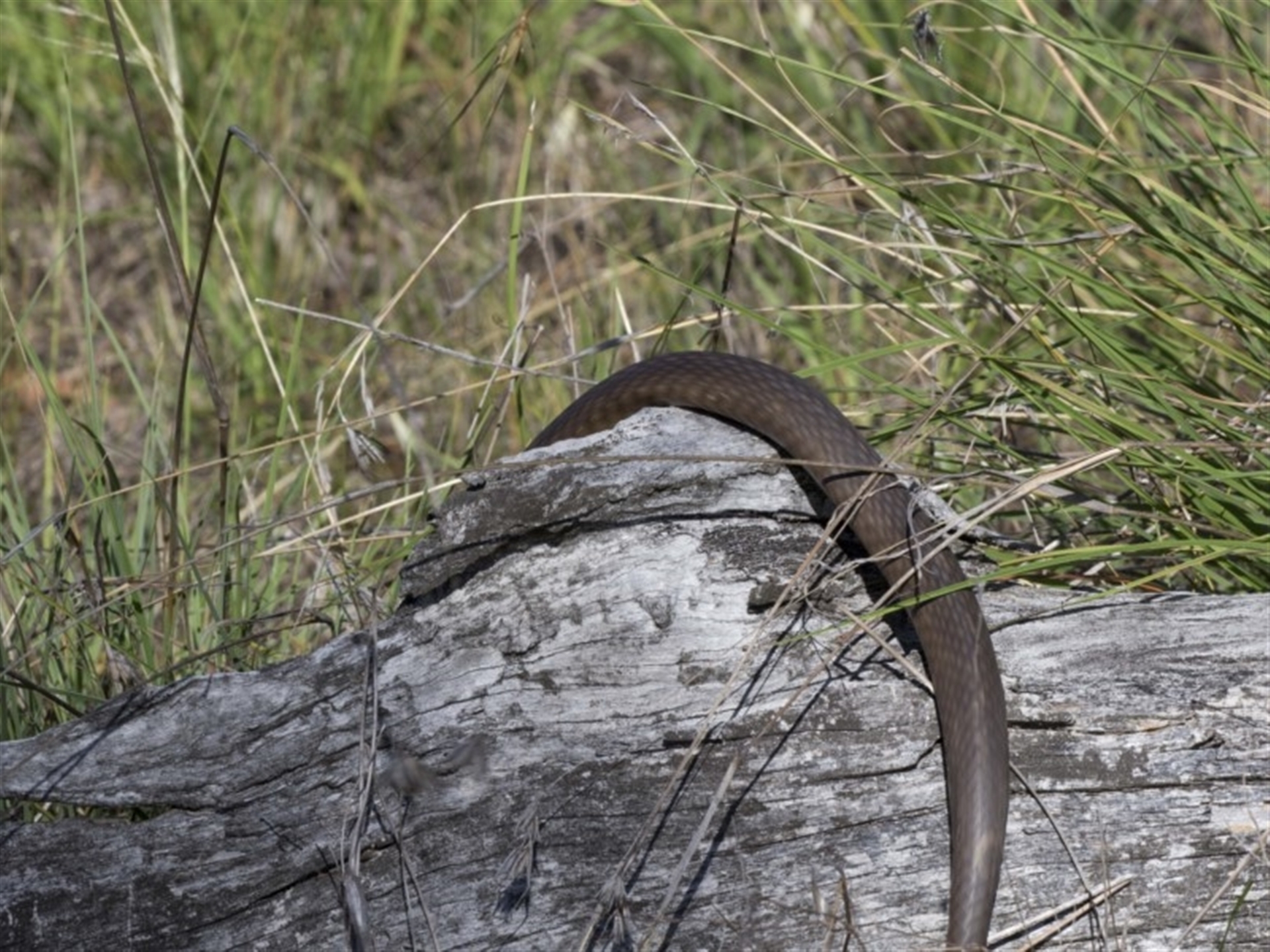 I was photographing a skink then slowly began to skirt round for a clearer view, but when I turned back this snake was gliding over the wood where the skink had been. It came out of nowhere and must have passed quite close behind me. I waited for it to come back out in the open, instead I eventually saw a smaller, lighter coloured snake hunting in the grass, and about to come in my direction. I decided it was time to leave.