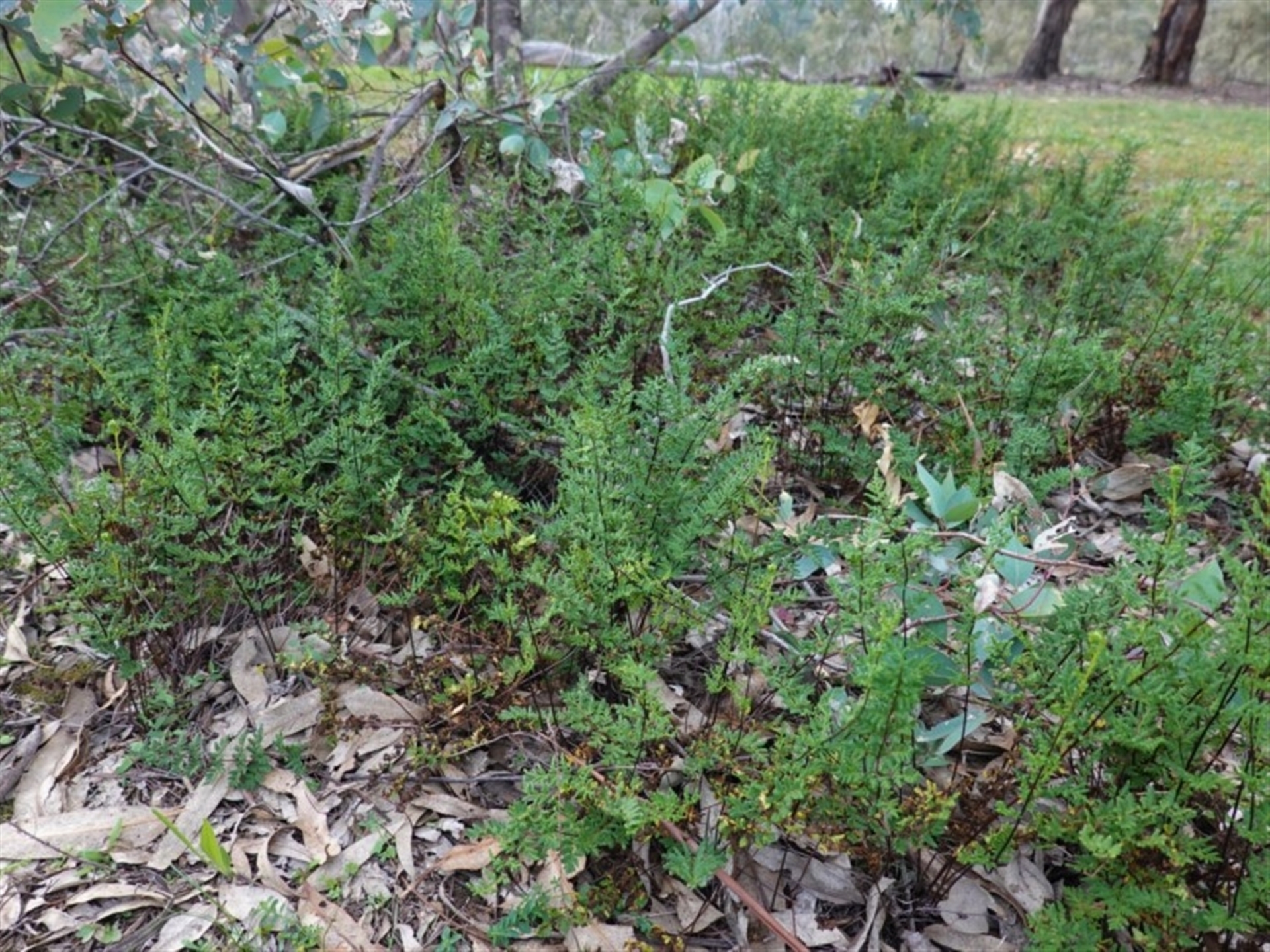 Photo 2 is a good illustration of a curious habit of C. sieberi, growing in clumps out in the open in grassy areas. I've seen it in numbers of places, including the lower southern slopes of Black Mountain. Jim Croft reported what he called Tree Fern Savannah in New Guinea. We might call this Cheilanthes Savannah.