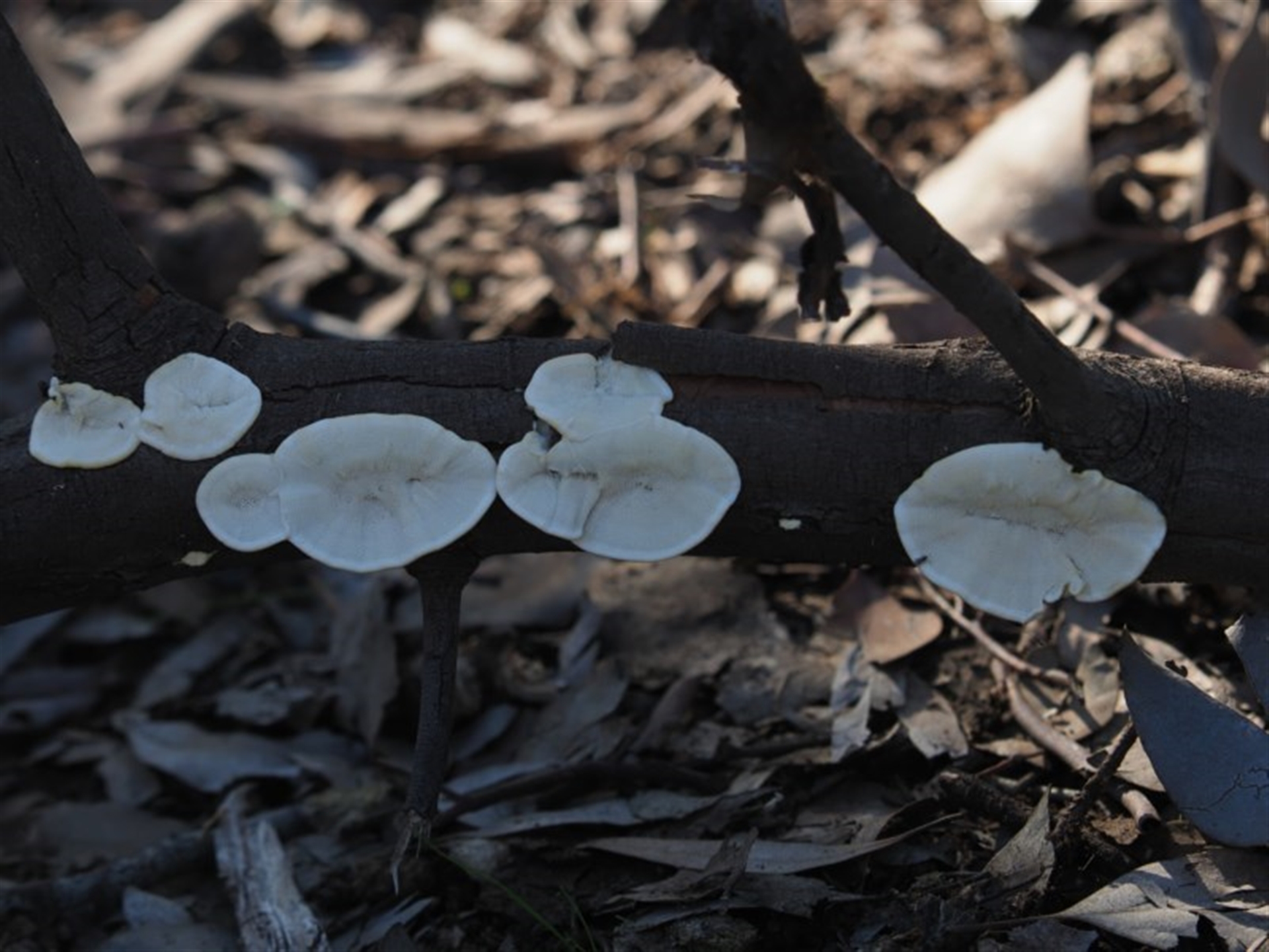 Caric Canberra & Southern Tablelands NatureMapr Trametes versicolor Pored or somewhat maze-like on underside [bracket polypores] Shelf-like to hoof-like & usually on wood Fungi