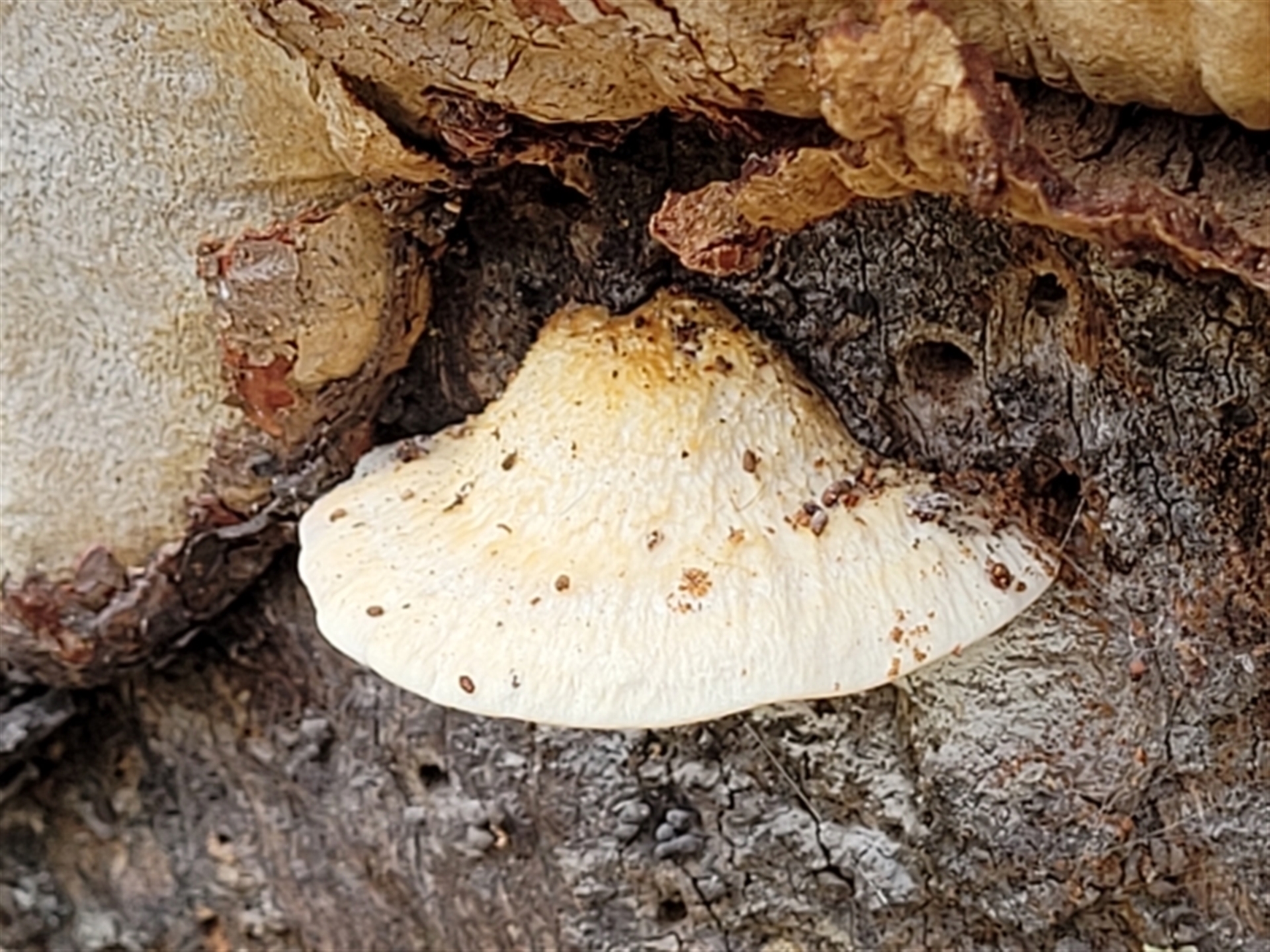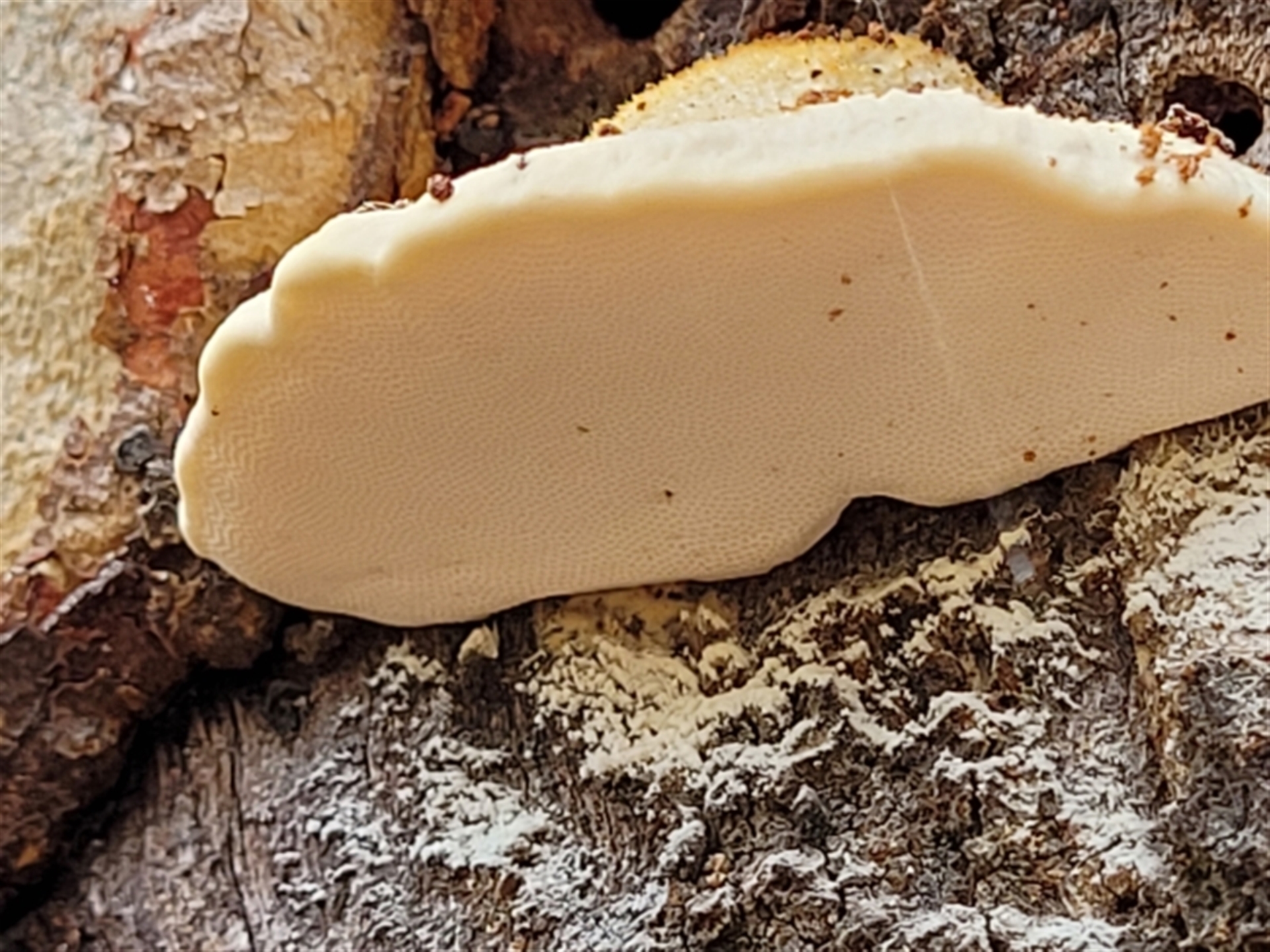 trevorpreston Canberra & Southern Tablelands NatureMapr Truncospora ochroleuca Pored or somewhat maze-like on underside [bracket polypores] Shelf-like to hoof-like & usually on wood FungiSynonyms
