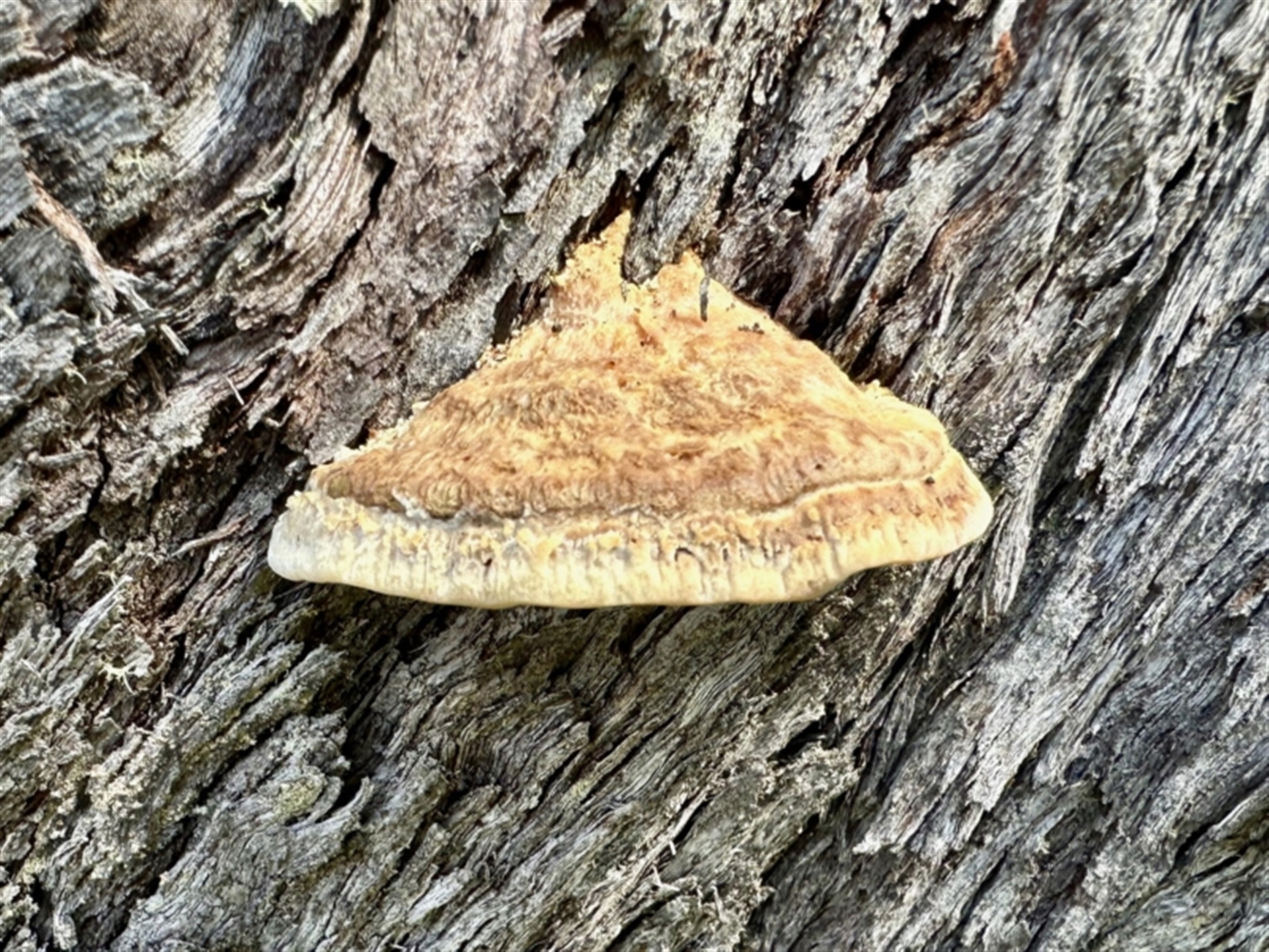 KMcCue Canberra & Southern Tablelands NatureMapr Truncospora ochroleuca Pored or somewhat maze-like on underside [bracket polypores] Shelf-like to hoof-like & usually on wood FungiSynonyms