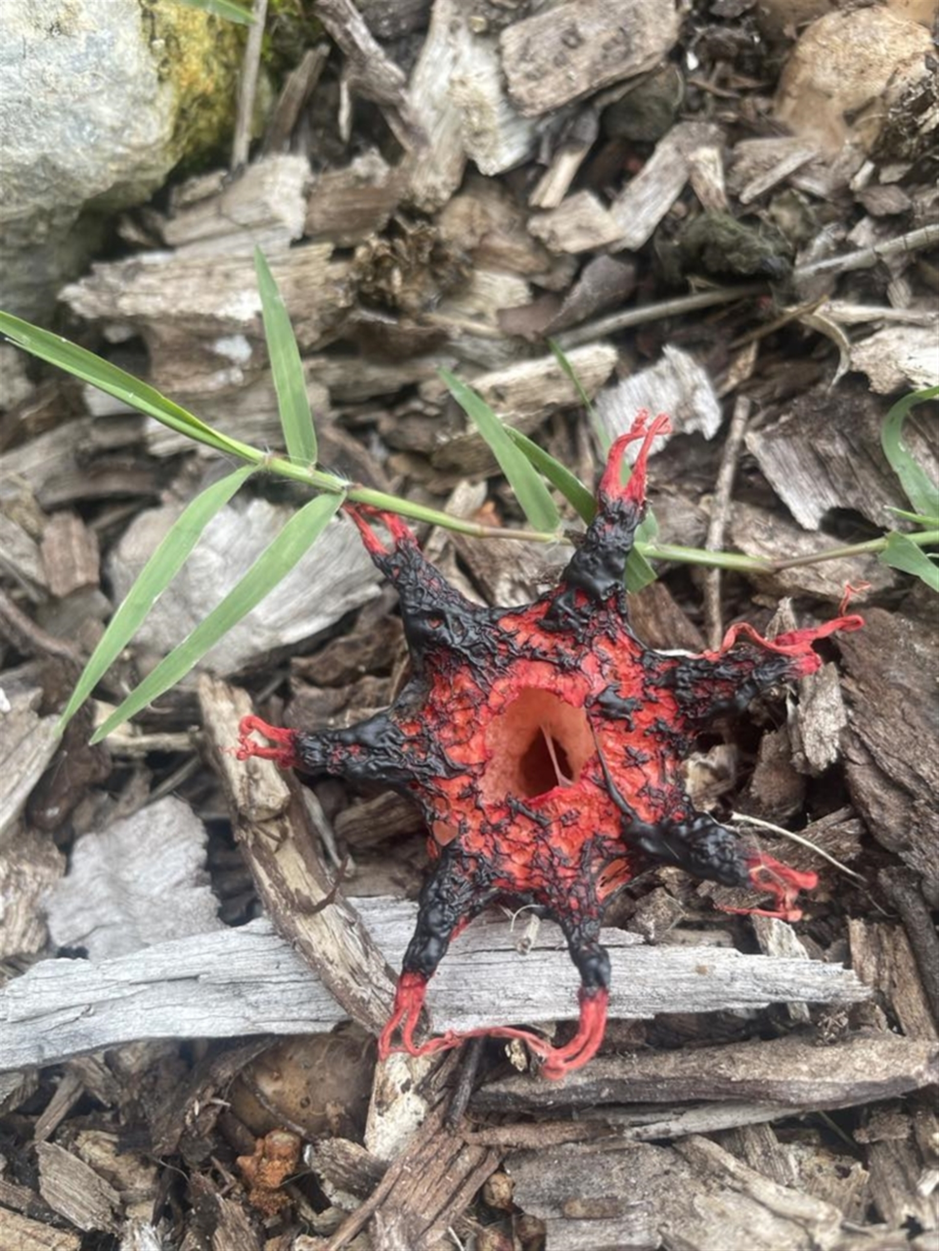 KateI Canberra & Southern Tablelands NatureMapr Aseroe rubra Stinkhorns, radiating arms atop a stem Stinkhorns: with a smelly, brownish spore slime Fungi
