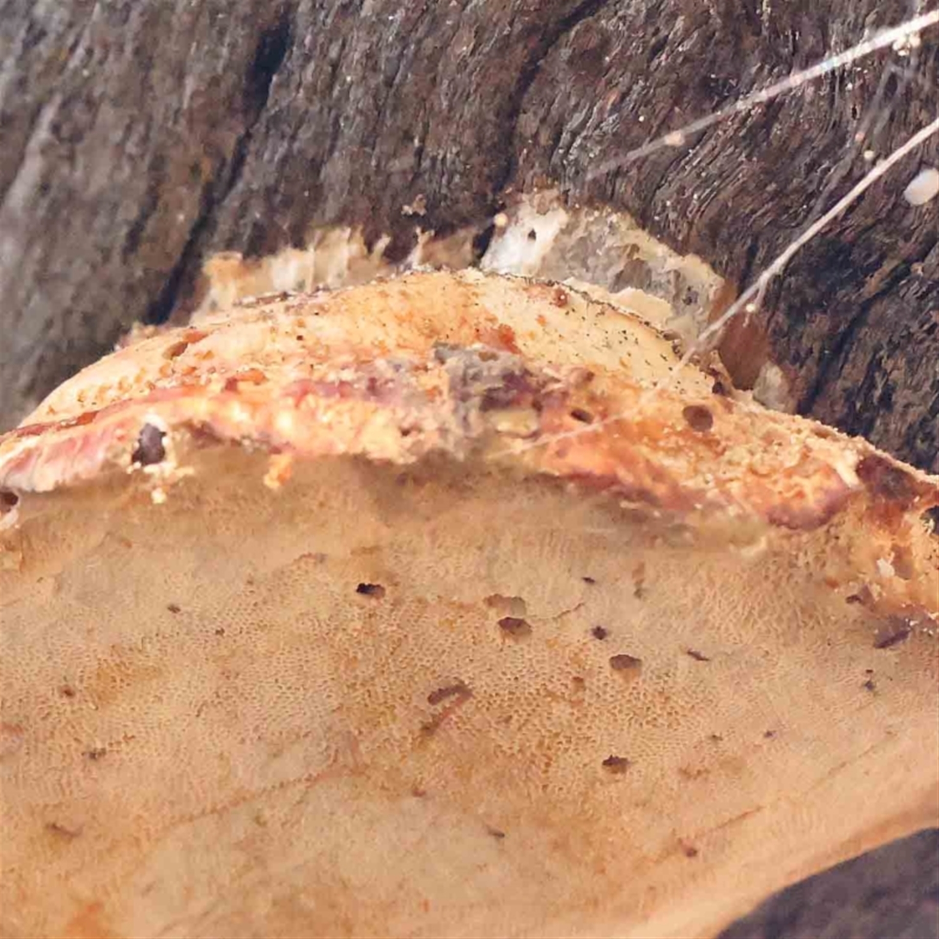 ConBoekel Canberra & Southern Tablelands NatureMapr Truncospora ochroleuca Pored or somewhat maze-like on underside [bracket polypores] Shelf-like to hoof-like & usually on wood FungiSynonyms
