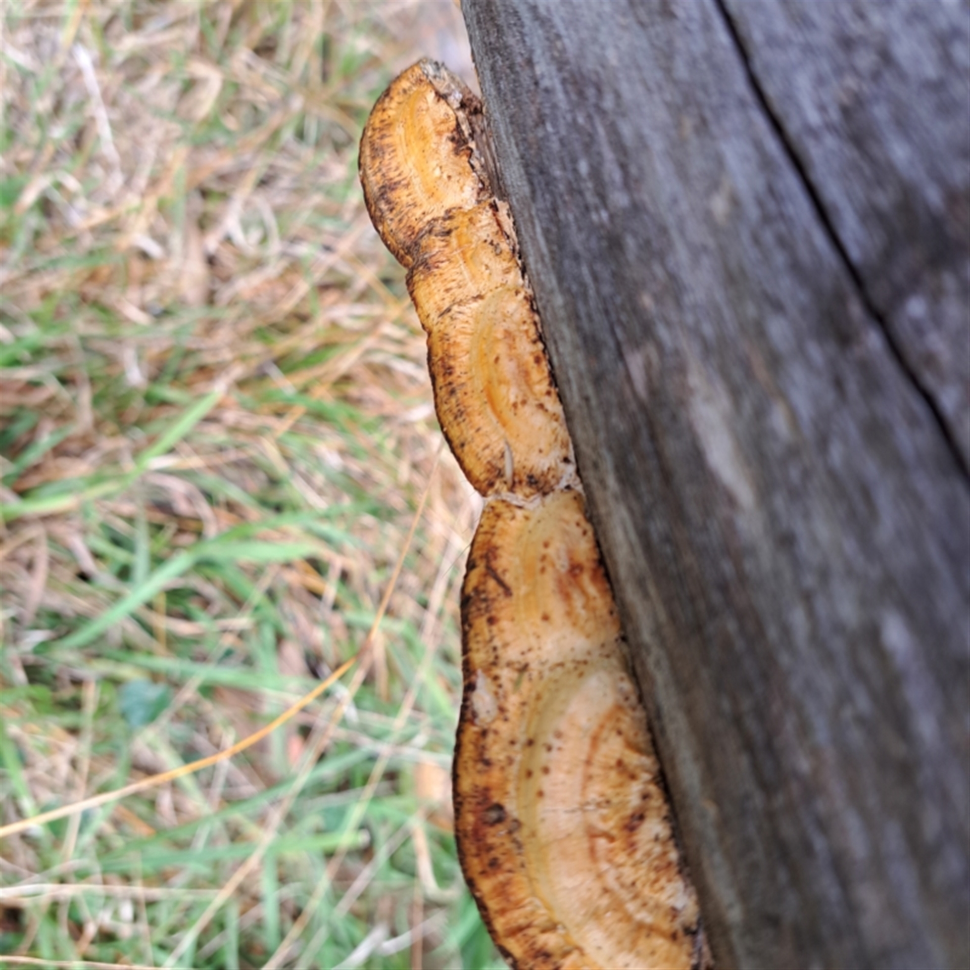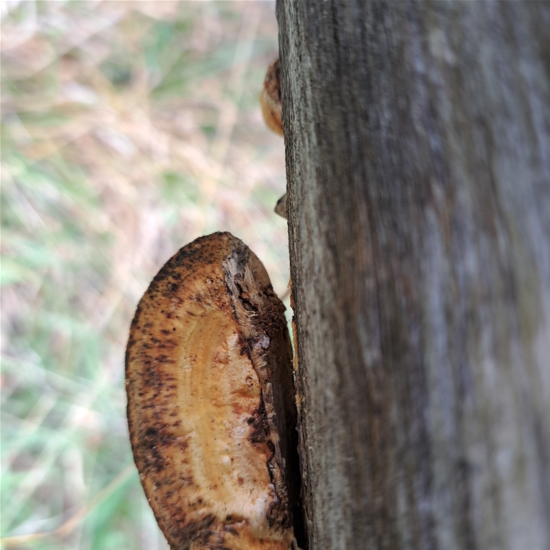 abread111 Canberra & Southern Tablelands NatureMapr Truncospora ochroleuca Pored or somewhat maze-like on underside [bracket polypores] Shelf-like to hoof-like & usually on wood FungiSynonyms