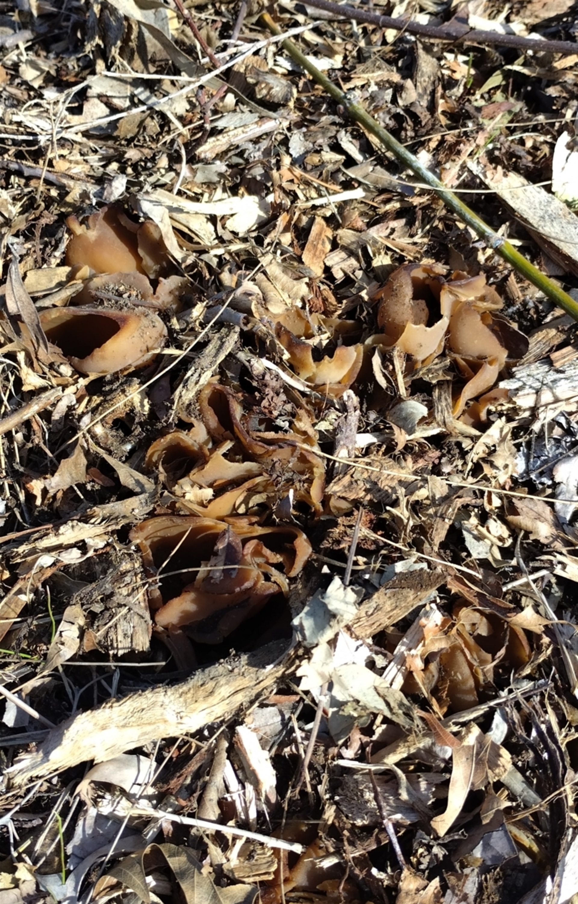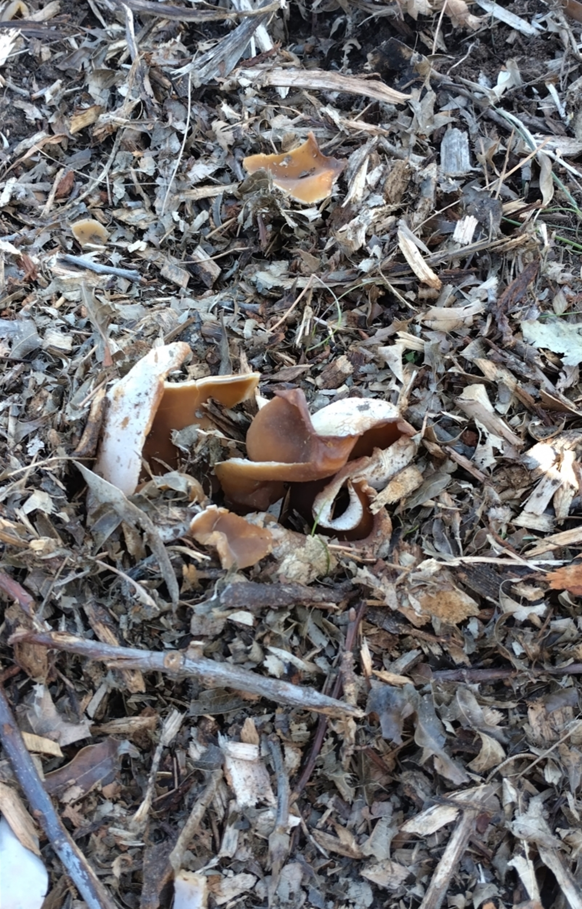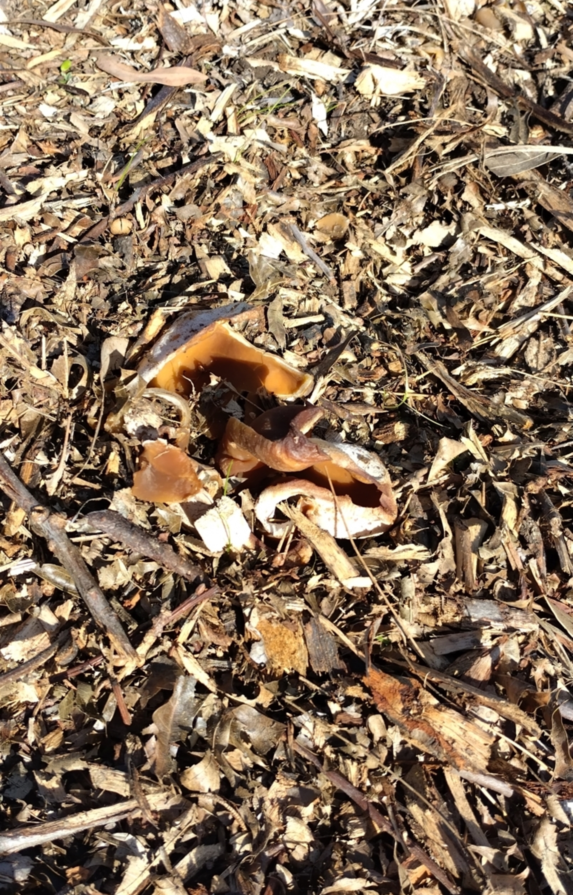 Selection of brown "plastic/petal like" fungii in plantings adjacent to bike path near Mawson ponds. Some were extremely wet, others dried out. At first I thought one was an ancient but of Tupperware! We are some of The Friends of Mawson Ponds group