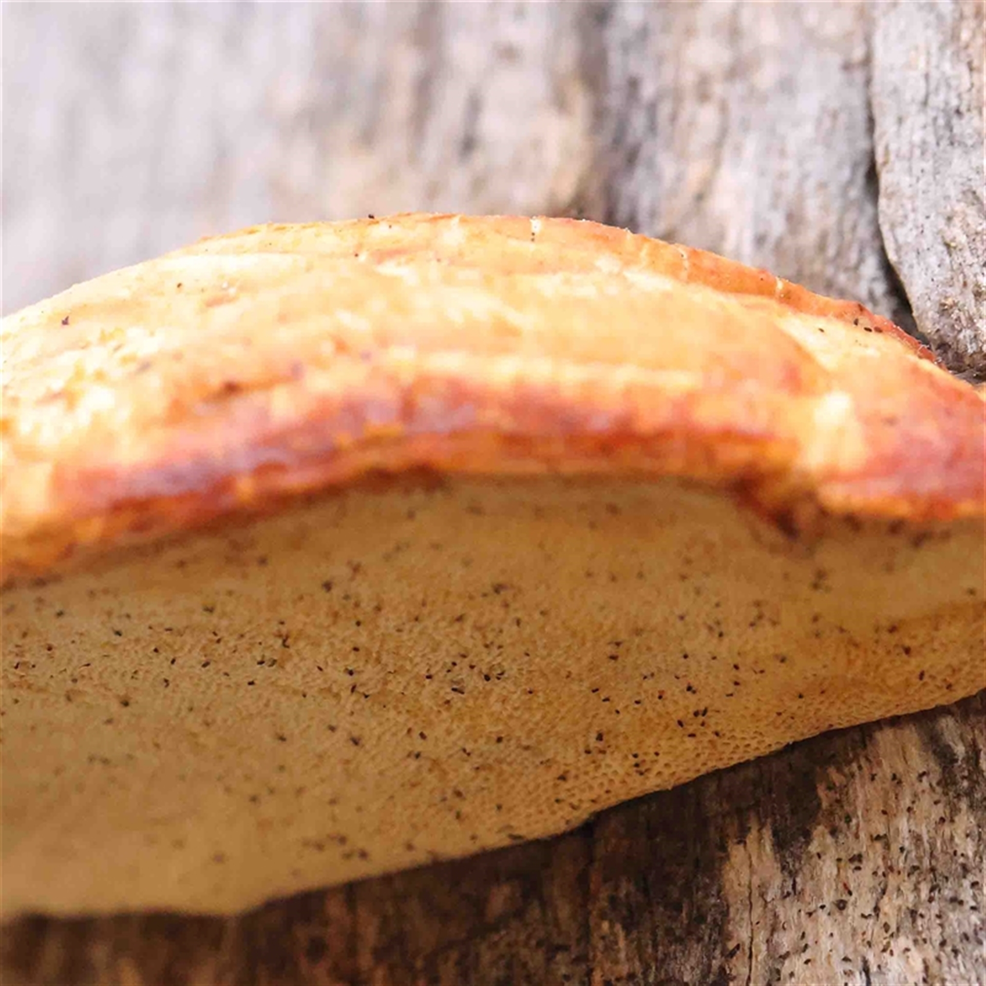 ConBoekel Canberra & Southern Tablelands NatureMapr Truncospora ochroleuca Pored or somewhat maze-like on underside [bracket polypores] Shelf-like to hoof-like & usually on wood FungiSynonyms