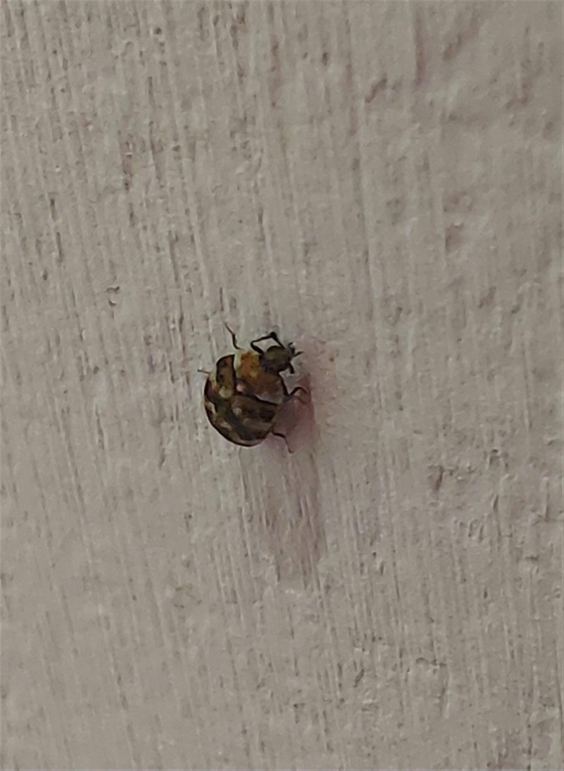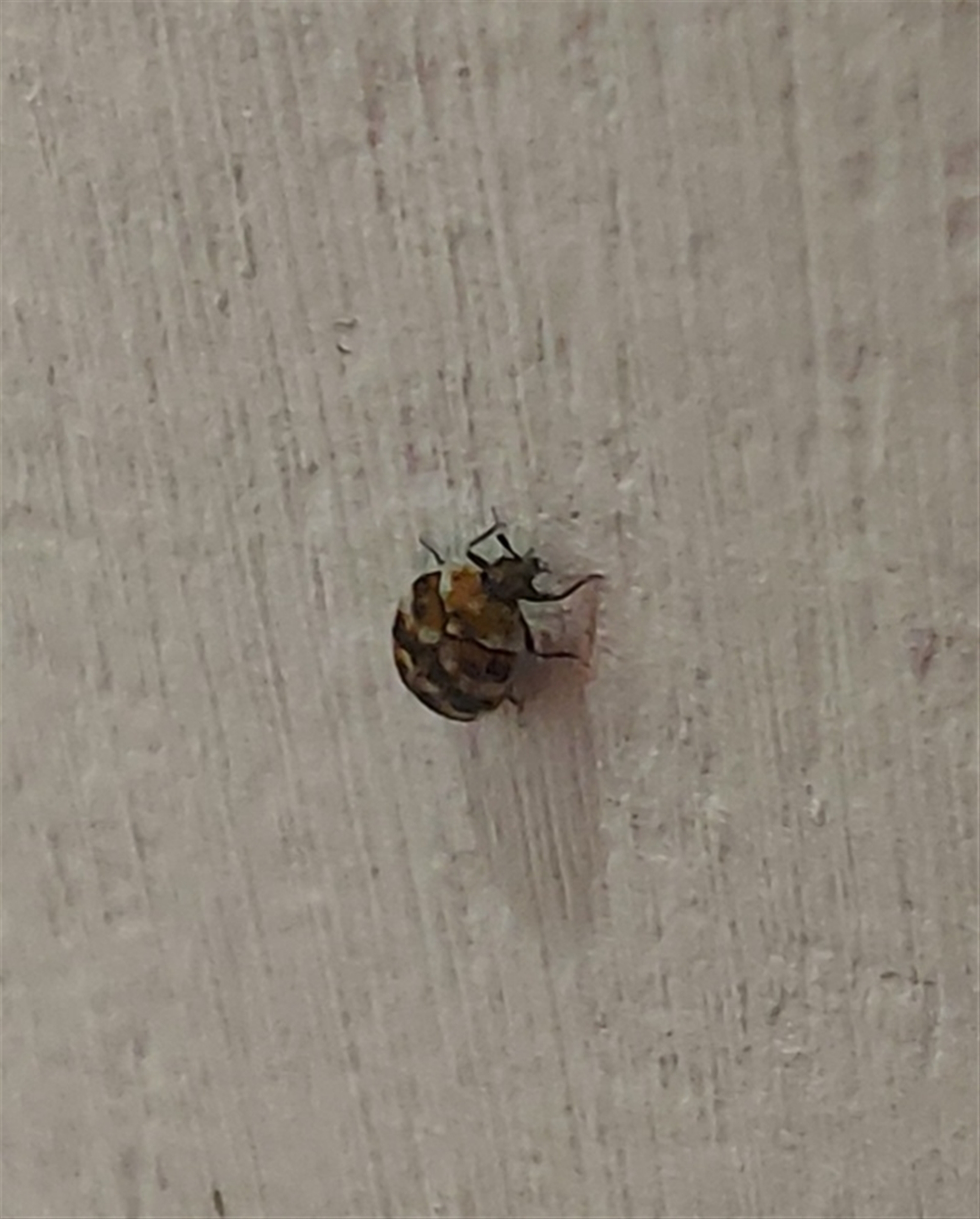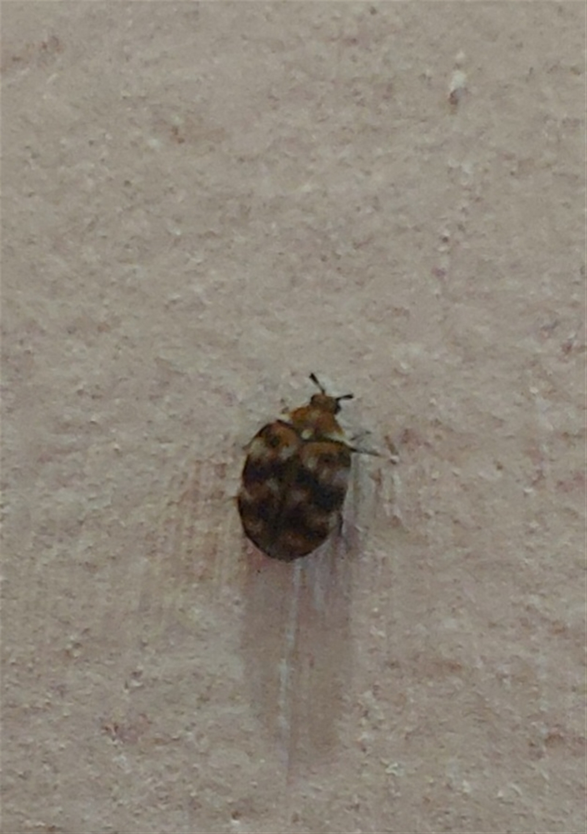 Tiny bug 2-3 mm each way, on wall at home, whitish spots on its back.