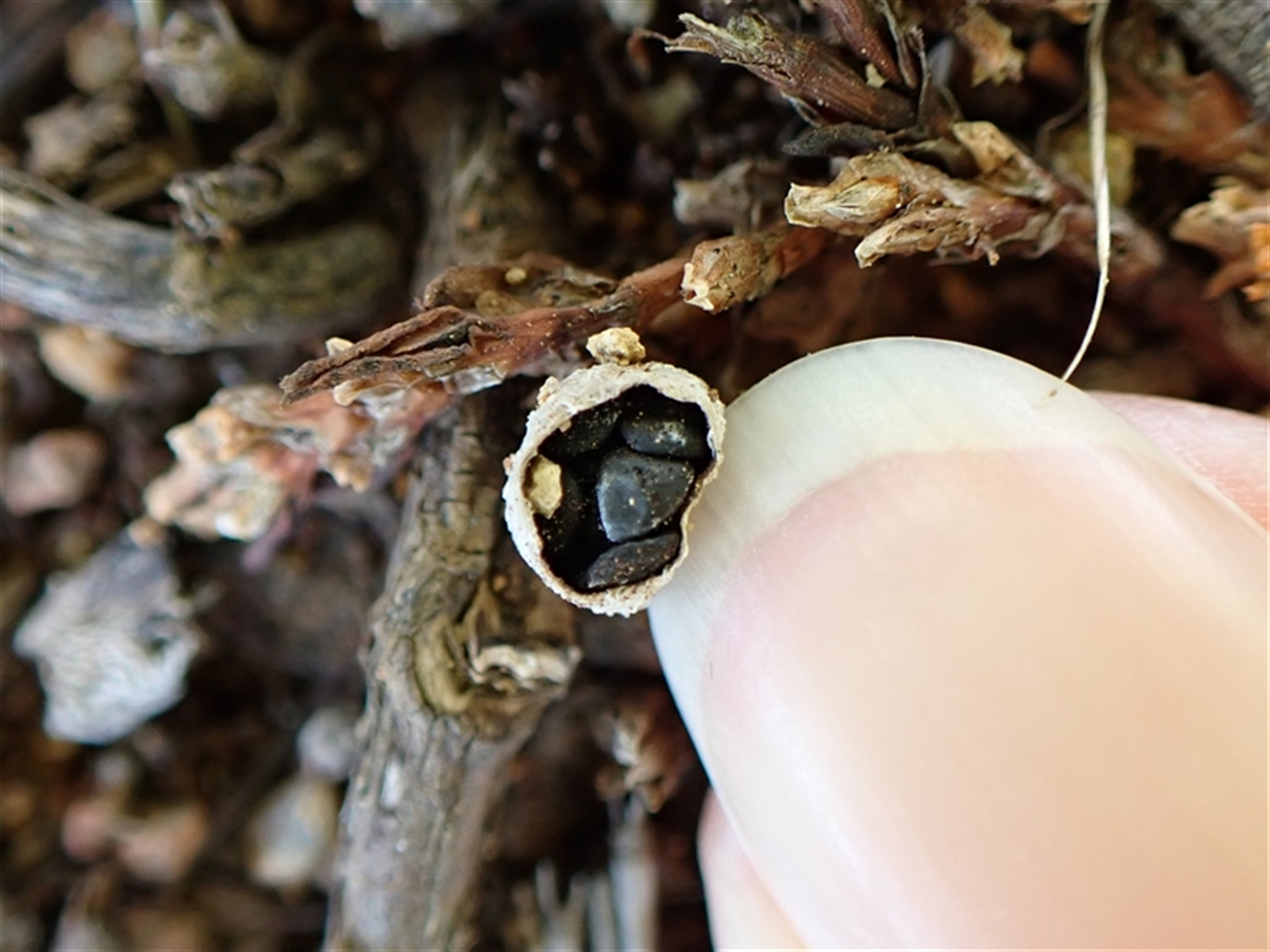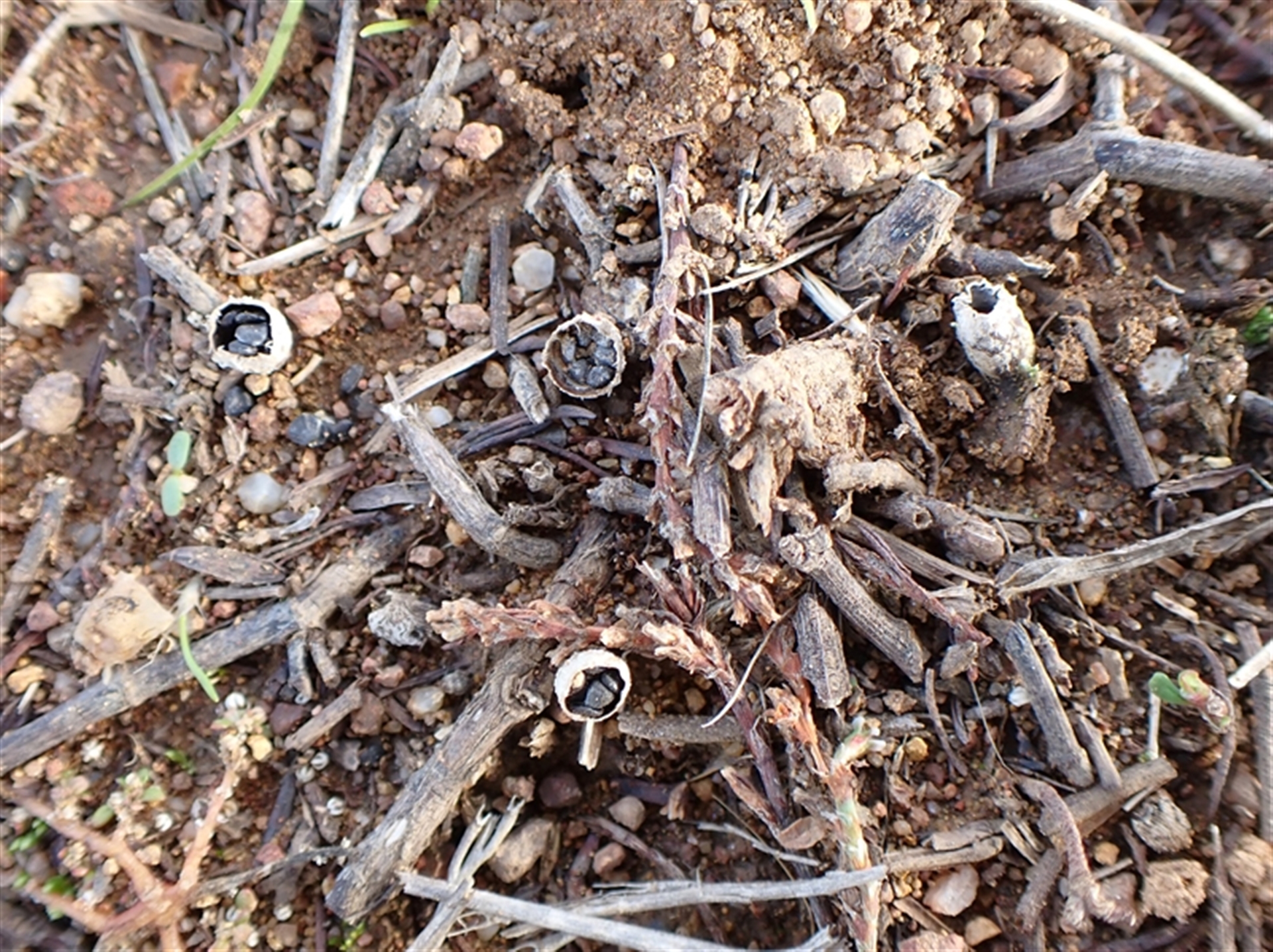 CathB NatureMapr Canberra & Southern Tablelands Cup with one or more 'eggs' inside [birds nest fungi and cannonball fungus] Disk-like to cup-like Fungi Cyathus stercoreus