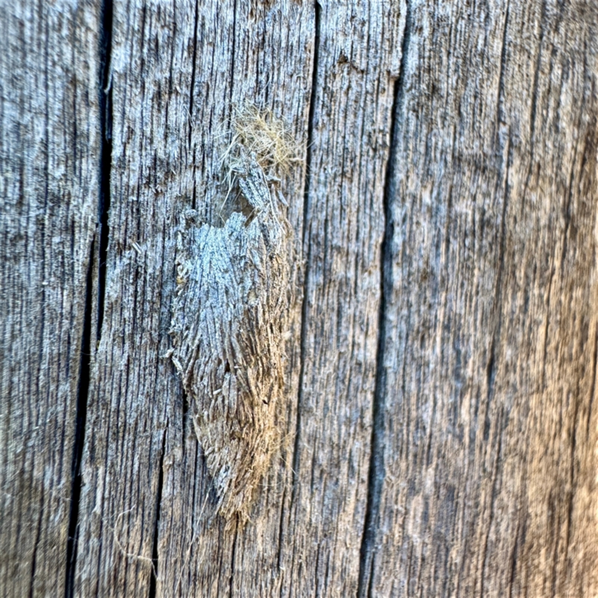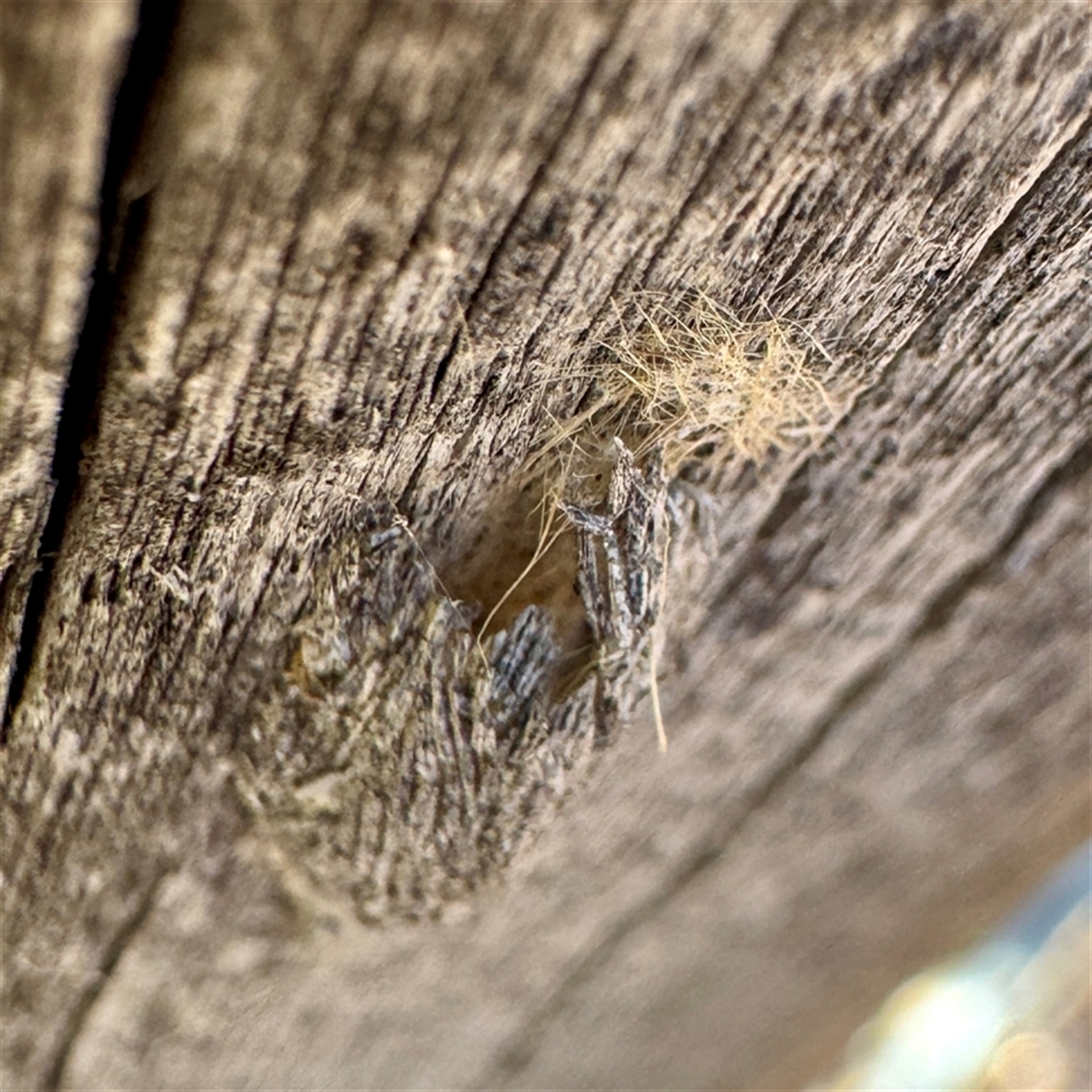 extrodinarily well disguised cocoon on a wooden post
